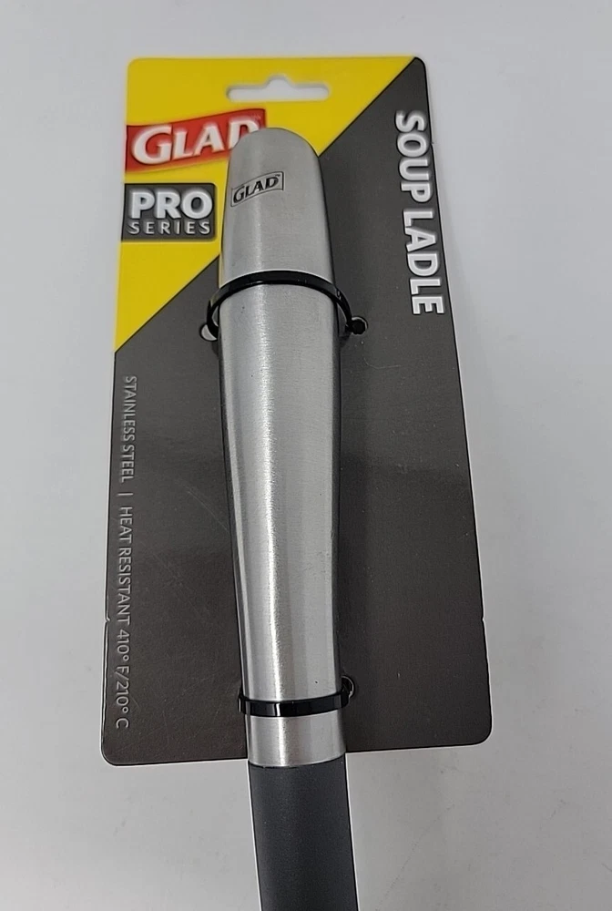 This Glad Pro Series soup ladle is a must-have for any kitchen. It is designed to make serving soups and stews a breeze. The ladle has a metal handle that offers a sturdy grip and ensures safe and easy handling. The gray color of the ladle complements any kitchen décor and is sure to impress your guests. The soup ladle comes with features like dishwasher safe, making it easy to clean and maintain. It is made of stainless steel and has a unit quantity of one. This ladle is perfect for serving different types of soups and stews.