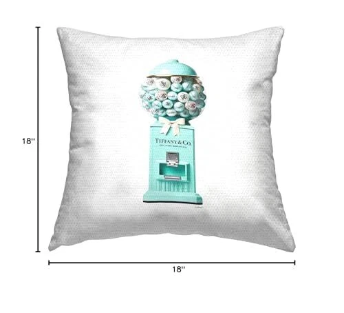 Dimensions: 18 x 18 Inches, Including Filling Insert Decorative outdoor pillows are a great and easy way to decorate your outdoor living space, adding both a decorative accent and comfort. Pillows arrive with insert already zipped inside and ready to fluff. Casing and filling insert are both made of quick-dry soft polyester material. The printing process makes the ink part of the fabric for greater outdoor durability. To wash remove filling insert from casing using invisible zipper. Clean pillow case separately, machine wash on delicate with cold water and mild detergent. For best quality hang dry. Pillow insert is spot clean only. Artwork Relates To: Gumball Machine, Candy, Glam, Fashion Design by Amanda Greenwood