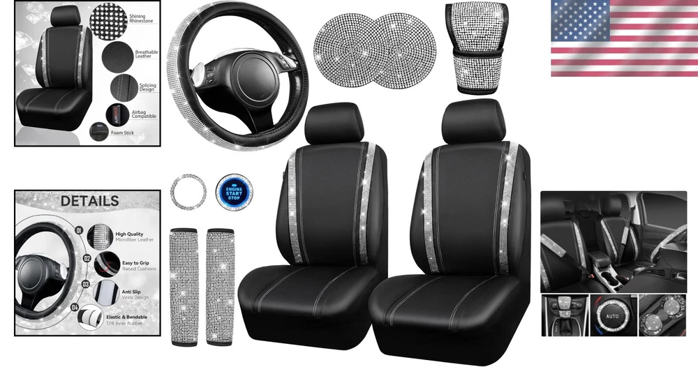 Glamorous 12-Piece Rhinestone Car Accessory Set – Diamond Seat Covers & More! ‹ › ‹ › ‹ › ‹ › ‹ › ‹ › ‹ › ‹ › ‹ › ‹ › Glamorous 12-Piece Rhinestone Car Accessory Set Diamond Seat Covers & More! Bling Diamond Design This exquisite bling auto accessories set is envisioned by automotive design experts to seamlessly fit 95% of car models on the market. Transform your vehicle into a glamorous retreat with these elegant decorations, perfect for special occasions such as Valentine's Day, birthdays, or a delightful surprise for your loved ones. High-Quality Material Gorgeous steering wheel cover enhances your car's interior. Diamond seat belt covers blend safety with style. Two diamond silicone coasters keep your cup holders tidy. Diamond seat belt cushions offer unparalleled comfort. Each piece sparkles and shines, enveloping your vehicle in dazzling elegance. Easy to Install Universal sizes designed to fit most cars, including full-size trucks and SUVs. The premium leather diamond front seat covers are adorned with beautiful white rhinestones. Steering wheel cover fits 14-15.5 inches in diameter for a snug fit. Coaster diameter of 2.7 inches keeps your interior clean. Shoulder strap covers: 9.2 x 2.3 inches for added comfort. Gear cover dimensions: 5 x 3 inches ensures a perfect fit. Super Value Package This exquisite set includes: Two front seat covers Two seat hats 1 Diamond Steering Wheel Cover 1 Diamond Gear Cover 2 Diamond Seat Belt Covers 1 Bling One Button Start Ring 2 Diamond Cup Holder Coasters Simple yet fashionable, these diamond decorations emit a captivating glow under sunlight or headlights, elevating your car's personality and charm. Excellent Service We pride ourselves on high-quality automotive accessories and exceptional customer service. Your satisfaction is our priority, and we strive to exceed your expectations with every purchase. Revamp your driving experience with elegance and style – order your Glamorous 12-Piece Rhinestone Car Accessory Set today! Shipping Free & Fast Shipping - We offer free shipping to most of the USA with a normal delivery time of 3-7 days. However, due to the current situation, additional delivery time (up to 3 weeks) may be required for some items. Alternative Carriers - We may use alternative carriers (e.g. USPS, FedEx, UPS, etc.) to ensure your package arrives safely and on time. Due to the use of multiple carriers, we are unable to provide a tracking number automatically. Handling Time - Orders are processed and shipped within 1-2 business days of receiving cleared payment. Shipping Restrictions - Shipping to Alaska, Hawaii, Puerto Rico, Guam, and other US territories may incur shipping charges or delivery restrictions. Please contact us before ordering, or your order can be refunded/cancelled. State Restrictions - There may be restrictions based on your state of purchase. For example, certain items may not be shipped to California due to state regulations. Contact for Tracking Updates - If you require tracking updates or have any concerns about the delivery of your order, please feel free to contact us, and we will be happy to assist you. Return 30-Day Hassle-Free Returns - We want you to be completely satisfied with your purchase. If you are not, you can return the item within 30 days of receiving it for a full refund or exchange. Easy Return Process - To start a return, simply contact us and we will provide you with a prepaid return shipping label and detailed instructions. Restocking Fee - There are no restocking fees for returns. However, the buyer is responsible for return shipping costs if the return is not due to a seller's error. Refund Processing Time - Refunds will be processed within 5 business days of receiving the returned item in its original condition. Payment We accept all major credit cards, PayPal, and Apple Pay for your convenience. Your payment information is secure and encrypted to ensure a safe and seamless transaction. Please complete your payment within 3 days of purchase to avoid any delays in shipping. Feedback Your feedback is extremely important to us. We strive to provide the best products and customer service possible. If you are satisfied with your purchase, please take a moment to leave us a positive review. If you have any concerns or issues with your order, please contact us before leaving negative feedback. We are committed to resolving any problems and ensuring your satisfaction. Contact Us If you have any questions or concerns, please feel free to reach out to our customer support team. You can contact us through the eBay messaging system. We are available Monday to Friday, 9:00 am to 5:00 pm EST, and we will do our best to respond to your inquiry within 24 hours. Buy it now and enjoy a pleasant shopping experience! UPC: Not Set Material: Leather Placement on Vehicle: Front Seat Type: Full Set Features: Airbag Friendly,Easy Installation Items Included: Seat Cover,Steering Wheel Cover,Gear Cover,Seat Belt Cover,Cup Holder Coasters,One Button Start Ring,Two front seat covers,Two seat hats,1 Diamond Steering Wheel Cover,1 Diamond Gear Cover,2 Diamond Seat Belt Covers,1 Bling One Button Start Rings,2 Diamond Cup Holder Coasters Brand: Unbranded Type: Seat Cover Set Color: Silver Manufacturer Part Number: Not Set OE/OEM Part Number: Not Set Country/Region of Manufacture: Not Set Manufacturer Warranty: Not Set Interchange Part Number: Not Set Superseded Part Number: Not Set Universal Fitment: Not Set Performance Part: Not Set Vintage Part: Not Set Personalize: Not Set
