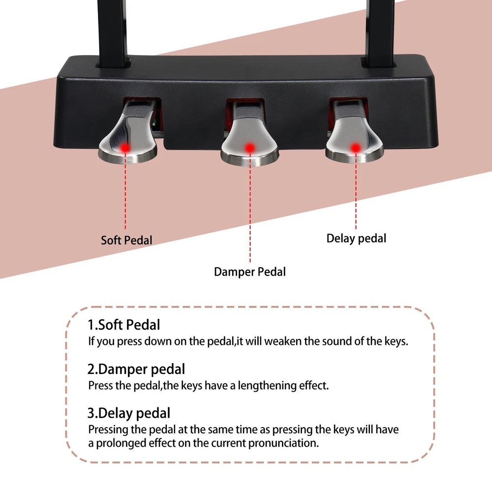 listing template VISIT OUR STORE SIGH UP FOR EMAIL Glarry 88 Keys Full Weighted Keyboards Digital Piano With Cover & Music Stand GDP-104 / GDP-815 GDP-104 GDP-815 GDP-105/8816A Introductions: Glarry 88 Keys Digital Piano Full Weighted Keyboards adopts the High Quality DREAM sound source, digital sampling, has 3 Pedal System (Soft/Sustain/Sostenuto Pedal), which can bring you the most striking sound effects. At the same time we have functions: Metronome, Touch/transpose control, Split/Touch Control, Volume Control, USB, Midi input/output, Record/Play, Audio input/output. Through the connection of Midi input and APP, you can realize the follow-up function, easy for beginners to learn. Our 88 key piano with two Dual Bluetooth, Audio Bluetooth and MIDI Bluetooth. Connect a COMPUTER or tablet with a USB cable for multimedia interaction. After the piano is turned on, Bluetooth will be automatically turned on. The mobile phone can search the MIDI Bluetooth signal of this piano. After the connection, the playing software on the mobile phone can realize the wireless connection with the piano. Features: 1. High Quality DREAM sound source 2. 64 Polyphony/ 20 Demo Songs/ 128 Rhythm/ 128 Timbre 3. Built-in two 10W Stereo Speakers 4. 3 Pedal System: Soft pedal-Soften the tone; Sustain pedal-Continuously increasing lengths of sustained notes, from slight to full; Sostenuto pedal-Press the pedal halfway down to get a partial damper effect 5. Dual Bluetooth, Audio Bluetooth and MIDI Bluetooth. Connect a COMPUTER or tablet with a USB cable for multimedia interaction 6. After the piano is turned on, bluetooth will be automatically turned on. The mobile phone can search the MIDI Bluetooth signal of this piano. After the connection, the playing software on the mobile phone can realize the wireless connection with the piano Specifications: Brand: Glarry Piano Color: Black Piano Dimensions: 49.4 in x 12.79 in x 27.95 in Package Dimensions: 52.36 in x 16.33 in x 11.61 in Package Weight: 58.3 lbs / 26.5kg Model: GDP-104 Keyboard Number of Keys: 88 Key (A1-C9) Action: Full Weighted Action Key Type: Piano-style Metronome: Yes Touch/transpose Control: Yes Split/Touch Control: Yes Sounds Sound Source: High Quality DREAM sound source Polyphony (max): 64-note Demo Songs: 20 Rhythm: 128 Timbre: 128 Connectivity MIDI Connectivity: MIDI over USB Bluetooth: Audio Bluetooth and MIDI Bluetooth USB Connectivity: NO Recording: Yes Headphone Jacks: 1 (1/8" Jack) Pedal Inputs: 3 Storage Type: Internal (64M 16M) Expandability Available: No AUX Input: Yes Line Output: Yes Line Input: Yes Onboard Features Recording/Playback MIDI Sequencer Accompaniment Styles: Comprehensive Chord Accompaniment Preset Songs: 20 Display: Backlight LED Built-in Speakers: Yes (2* 10W) Package Includes: 1 x Digital Piano 1 x Power Adapter 1 x Triple Pedals 1 x Headphone 1 x Headphone Adapter 1 x USB Cable 1 x Android Cable 1 x Piano Cloth 1 x Piano Cover 1 x Keyboard Sticker 1 x Music Clip 1 x Screwdriver, Screw Accessories and Manual Glarry GDP-105/8816A Features: 1. European custom Dream Sound source 2. 64 Polyphony/ 128 Demo Songs/ 128 Rhythm/ 380 Timbre 3. Built-in two 20 W Stereo Speakers 4. 3 Pedal System:Soft pedal-Soften the tone;Sustain pedal-Continuously increasing lengths of sustained notes,from slight to full;Sostenuto pedal-Press the pedal halfway down to get a partial damper effect 5. Dual Bluetooth,Audio Bluetooth and MIDI Bluetooth,Connect a COMPUTER or tablet with a USB cable for multimedia interaction. 6. After the piano is turned on, bluetooth will be automatically turned on. The mobile phone can search the MIDI Bluetooth signal of this piano. After the connection, the playing software on the mobile phone can realize the wireless connection with the piano. 7. Supports Cubase,FI Studio,Logic,Live ect. arrangement software Specifications: Brand:Glarry Piano Color: Black Piano Dimensions:50 in x 12.79 in x 30.51in (without music stand) Piano Dimensions:50 in x 12.79 in x 38.14in (with music stand) Keyboard key Dimensions: Black key width 0.41in, press depth 0.37in; White key width is 0.866in and the press depth is 0.43in Package Dimensions:52.95 in x 16.92 in x 11.81 in Package Weight: 66 lbs/ 30kg Model:GDP-105 Keyboard Number of keys: 88 Key (A1-C9) Action: Full Standard Weighted Action Key Type: Piano-style Metronome:Yes Touch/transpose control: Yes Split/Touch Control: Yes Sounds Sound Source: European custom Dream Sound source Polyphony (max): 64-note Demo Songs:128 Rhythm:128 Timbre:380 Connectivity MIDI Connectivity: MIDI over USB Bluetooth:Audio Bluetooth and MIDI Bluetooth USB MIDI Connectivity: Yes Recording:Yes Headphone Jacks: 1 (1/8" Jack) 3 Pedal inputs: Soft/Sustain/Sostenuto Pedal Storage type: RAM 64KB,FLASH 128M Expandability Available: No AUX Input: Yes Line Output: Yes Line Input: Yes Onboard Features Recording/Playback MIDI Sequencer Accompaniment Styles: Comprehensive Chord Accompaniment Preset Songs: 128 Display: Backlight LED Built-in speakers: Yes (2* 20W) Package Includes: 1 x Digital Piano 1 x Power Adapter 1 x Triple Pedals 1 x Headphone 1 x Headphone Adapters 1 x USB Cable 1 x Android Cable 1 x Piano Cloth 1 x Piano Cover 1 x Keyboard Sticker 1 x Music Clip 1 x Screwdriver , Screw Accessories And Manual You might like this more>> Portable Princess Castle Play House Blue Large Kids Play Tent $23.79 Double Shoe Rack Closet Shelf Storage Organizer $19.49 Oil Painting Easel Sketch Box Portable Folding $57.49 FCH L-Shaped Corner Computer Desk Home Office Desk $109.99 10 Tier Durable Storage Organizer 30 Pair Shoe Tower $18.99 24 Slots PU Leather Wrist Watch Box Display Case Organizer $16.99 Shipping Policy 1. Ship from New Jersey by Standard Int'l Shipping, and only to VERIFIED PAYPAL ADDRESS . 2.International Buyers – Please Note: a. Import duties, taxes and charges are not included in the item price or shipping charges. These charges are the buyer’s responsibility. b. Please check with your country’s cust