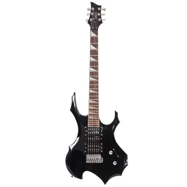 Introductions: Looking for a high-performance electric guitar? Then take a closer look at our Glarry Flame Electric Guitar HSH Pickup Shaped Electric Guitar Pack Strap Picks Shake Cable Wrench Tool! Featuring great sound and ease of playability, it is an ideal choice for beginners as well as Professional level. It uses the humbucker-single-humbucker pickup, can adapt to a variety of music style, has its 5 pickup adjustment. High-tensile strength fretwire ensures durability and smooth playability. What are you hesitating for? Bring it home right now! Features: 1. It can be used by both beginners and professionals 2. Cool body shape 3. Humbucker-single-humbucker pickup, suitable for various music styles 4. 5 pick up adjustment, 5 way switch; 1 x volume; 1 x tone 5. Tremolo bridge system 6. The neck double adjustment: Two - way adjustable neck 7. Audio interface: 1/4" Jack, suitable for universal audio 8. Complimentary: guitar bag, cable, shoulder strap, rocker and pick Specifications: 1. Style: Electric Guitar 2. Brand: Glarry 3. Body: • Orientation: Right Handed • Body: Basswood • Color:Black 4. Neck and Fingerboard • Neck: Maple • Fingerboard: Rosewood • Strings: 6 • Frets: 24 • Nut width: 1.656 in. (42 mm) • Scale Length: 25.5" 5. Pickups & Hardware: • Pickups: Humbucker-Single-Humbucker • Control: 5 Way Switch; 1 x Volume; 1 x Tone • Hardware: Tremolo • Jack: 1/4" 6. Dimensions • Guitar: (36.2 x 12.8 x 1.65)" / (92 x 32.5 x 4.2)cm(L x H x W) • Gutiar Weight: 6.28lb / 2.85kg Package Includes: 1 x Electric Guitar 1 x Electric Guitar Bag 1 x Guitar Strap 1 x Tremolo Arm 1 x Amp Wire 1 x Wrench Tool 1 x Plectrum