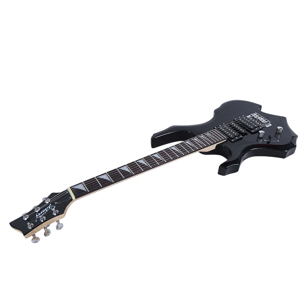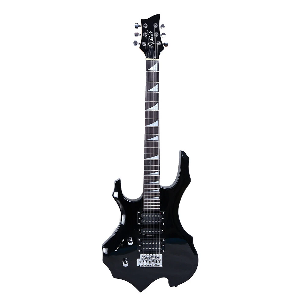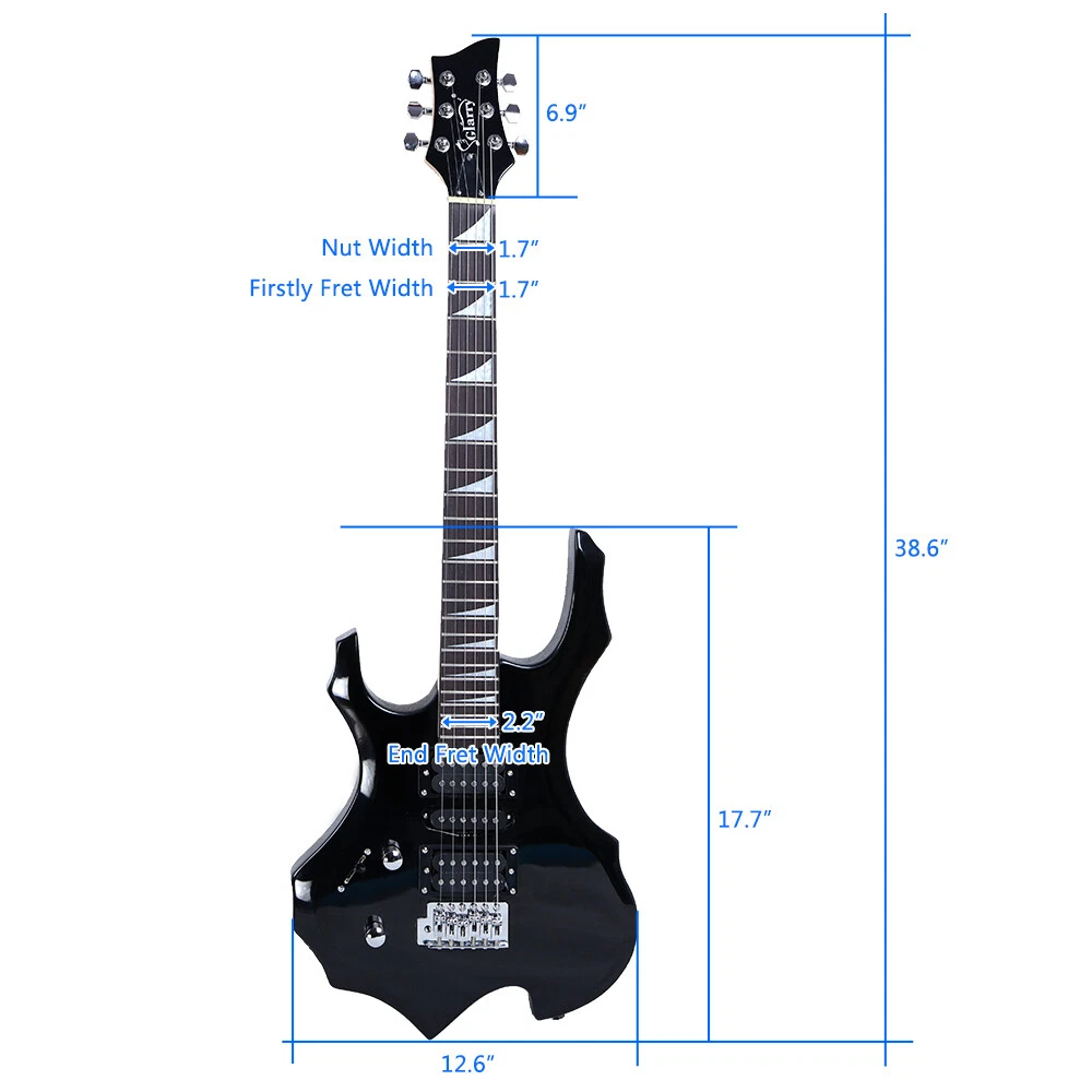Introductions: Looking for a high-performance electric guitar? Then take a closer look at our Glarry Flame Left Hand Electric Guitar HSH Pickup Shaped Electric Guitar Pack Strap Picks Shake Cable Wrench Tool! Featuring great sound and ease of playability, it is an ideal choice for beginners as well as Professional level. It uses the humbucker-single-humbucker pickup, can adapt to a variety of music style, has its 5 pickup adjustment. High-tensile strength fretwire ensures durability and smooth playability. What are you hesitating for? Bring it home right now! Features: 1. Left hand configuration 2. It can be used by both beginners and professionals 3. Cool body shape 4. Humbucker-single-humbucker pickup, suitable for various music styles 5. 5 pick up adjustment, 5 way switch;1 x volume;1 x tone 6. Tremolo bridge system 7. The neck double adjustment: Two - way adjustable neck 8. Audio interface: 1/4" Jack, suitable for universal audio 9. Complimentary: guitar bag, cable, shoulder strap, rocker, pick Specifications: 1. Style: Electric Guitar 2. Brand: Glarry 3. Body: • Orientation: Left Handed • Body: Basswood • Color:Black 4. Neck and Fingerboard • Neck: Maple • Fingerboard: Rosewood • Strings: 6 • Frets: 24 • Nut width: 1.656 in. (42 mm) • Scale Length: 25.5" 5. Pickups & Hardware: • Pickups: Humbucker-Single-Humbucker • Control: 5 Way Switch; 1 x Volume; 1 x Tone • Hardware: Tremolo • Jack: 1/4" 6. Dimensions • Guitar: 36.2" x 12.8" x 1.65" / 92cm x 32.5cm x 4.2cm • Gutiar Weight: 6.28lb / 2.85kg Package Includes: 1 x Electric Guitar 1 x Electric Guitar Bag 1 x Guitar Strap 1 x Tremolo Arm 1 x Amp Wire 1 x Wrench Tool 1 x Plectrum