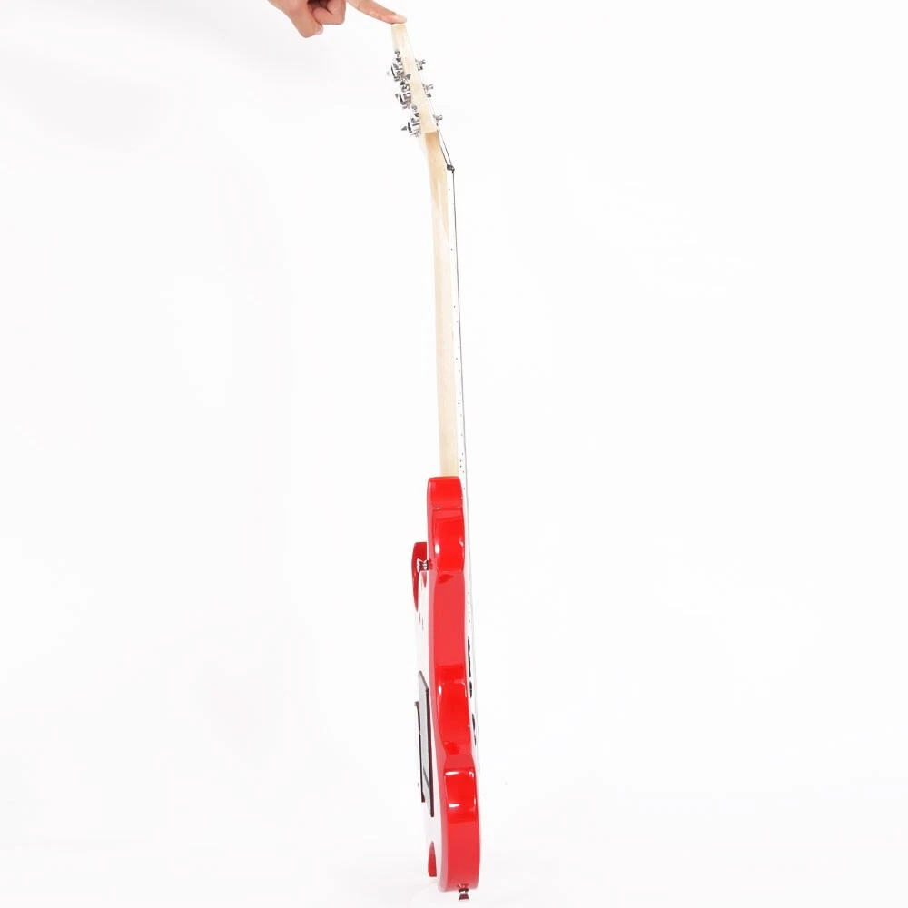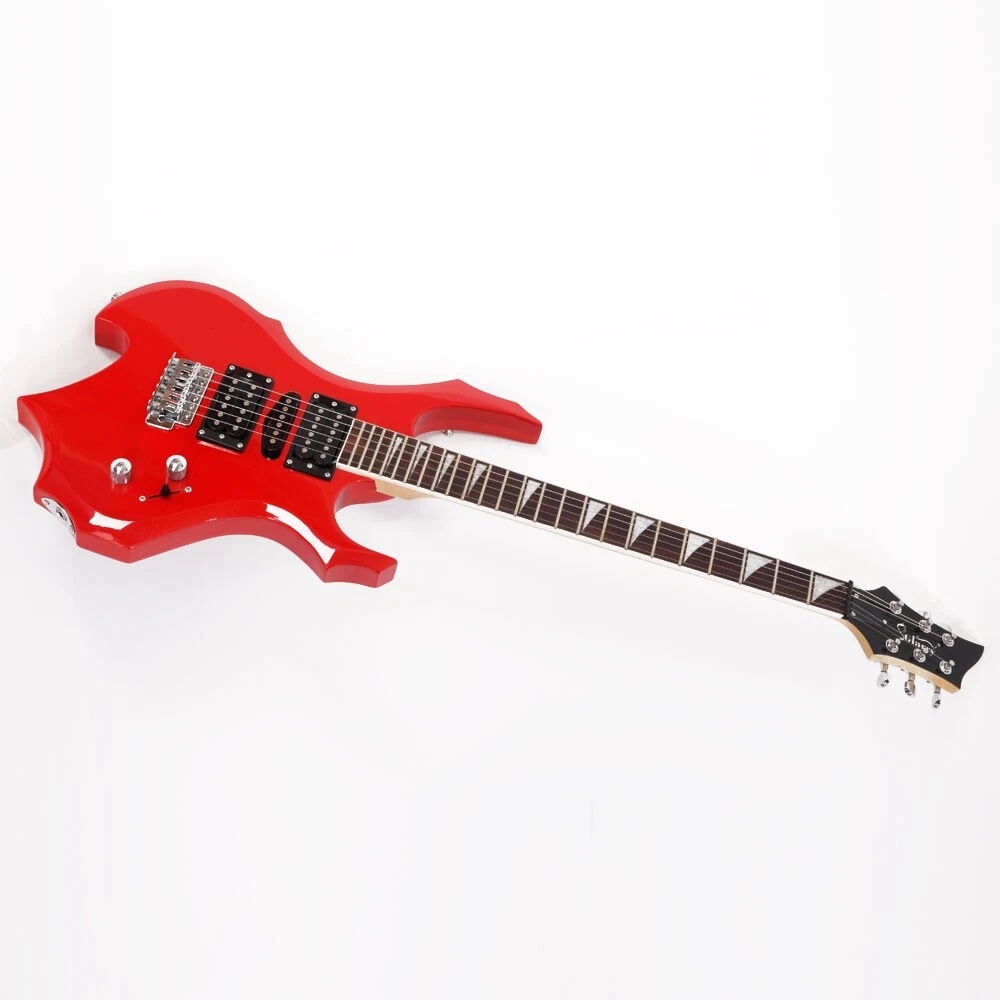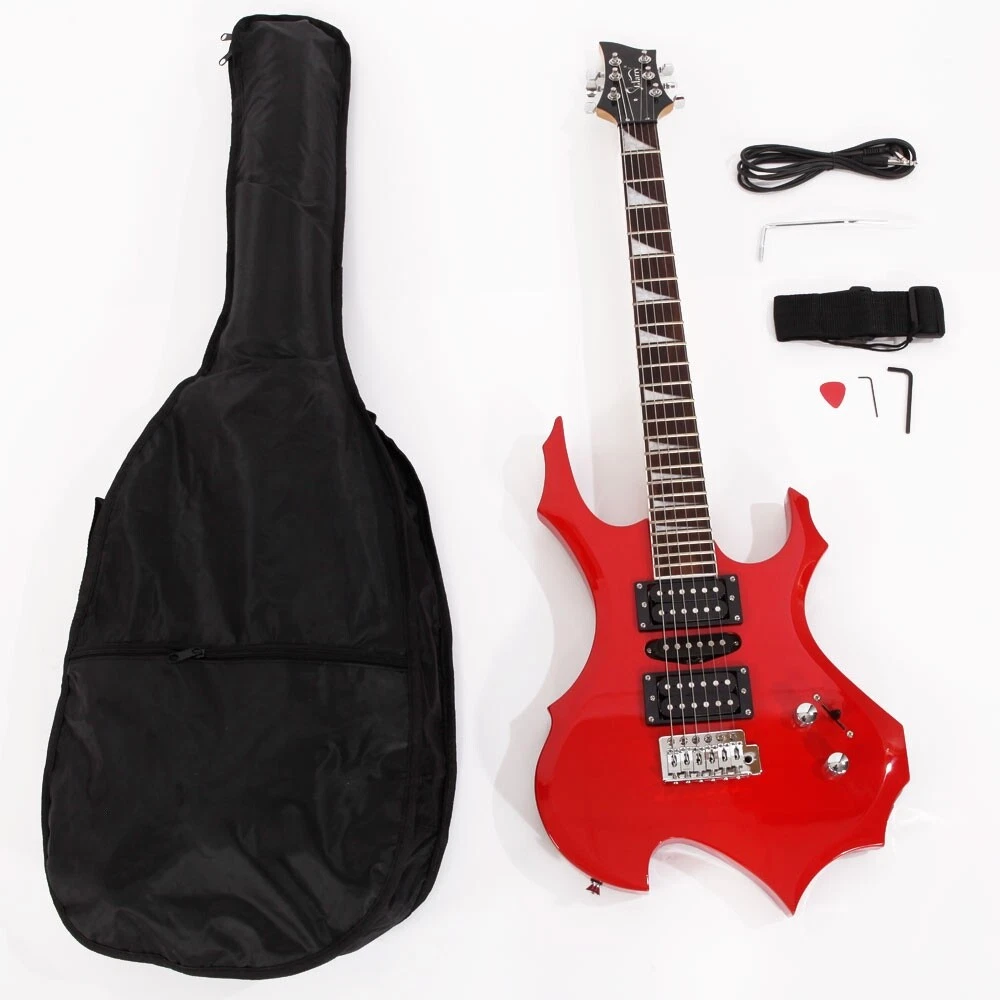 Introductions: Looking for a high-performance electric guitar? Then take a closer look at our Glarry Flame Shaped Electric Guitar with 20W Electric Guitar Sound HSH Pickup Novice Guitar ! Featuring great sound and ease of playability, it is an ideal choice for beginners as well as Professional level. It uses the humbucker-single-humbucker pickup, can adapt to a variety of music style, has its 5 pickup adjustment. High-tensile strength fretwire ensures durability and smooth playability. What are you hesitating for? Bring it home right now! Features: 1. Beginner level, professional level is also available 2. Cool body shape 3. Humbucker-single-humbucker pickup, suitable for various music styles 4. 5 pick up adjustment, 5 way switch; 1 x volume; 1 x tone 5. Tremolo bridge system 6. The neck double adjustment: Two - way adjustable neck 7. Audio interface: 1/4" Jack, suitable for universal audio 8. 20W electric guitar audio 9. Complimentary: guitar bag, cable, shoulder strap, rocker, pick Specifications: 1. Style: Electric Guitar 2. Brand: Glarry 3. Body: • Orientation: Right Handed • Body: Basswood • Color:Red 4. Neck and Fingerboard • Neck: Maple • Fingerboard: Rosewood • Strings: 6 • Frets: 24 • Nut width: 1.656 in. (42 mm) • Scale Length: 25.5" 5. Pickups & Hardware: • Pickups: Humbucker-Single-Humbucker • Control: 5 Way Switch; 1 x Volume; 1 x Tone • Hardware: Tremolo • Jack: 1/4" 6. 20W Electric Guitar Amp • Front Panel Controls: Gain,Bass,Treble, Volume, Headphone • Bass Guitar Input: (1/4" Jack) • Headphone output: (1/4" Jack, Speaker defeating) • Dimensions: 29*27*11.3cm • Weight: 3.0 kg 7. Dimensions • Guitar: (38.6 x 12.8 x 1.65)" / (98 x 32.5x 4.2)cm(L x W x H) • Gutiar Weight: 6.28lb / 2.85kg Package Includes: 1 x Electric Guitar 1 x 20W Electric Guitar AMP 1 x Electric Guitar Bag 1 x Guitar Strap 1 x Tremolo Arm 1 x Amp Wire 1 x Wrench Tool 1 x Plectrum Warm Note:WARNING USE OF SPEAKERS: TO REDUCE THE RISK OF FIRE OR ELECTRIC SHOCK DO NOT EXPOSE TO RAIN OR MOISTURE INDOOR USE ONLY, AND PLEASEl UNPLUG THE SOCKET IMMEDIATELY WHEN THE SPEAKER IS NOT IN USE. RISK OF ELECTRIC SHOCK DO NOT OPEN