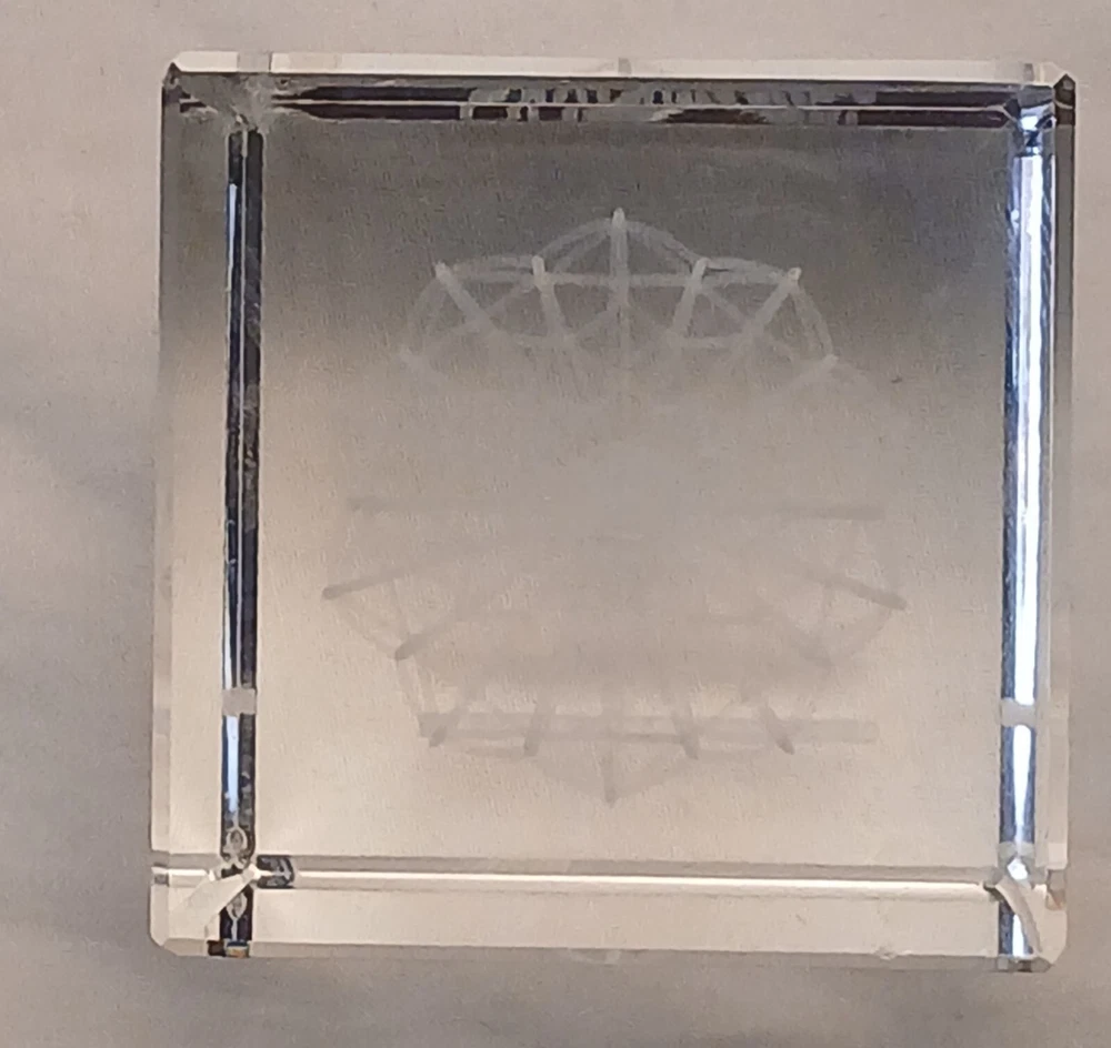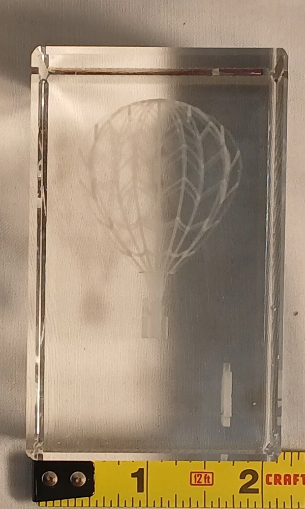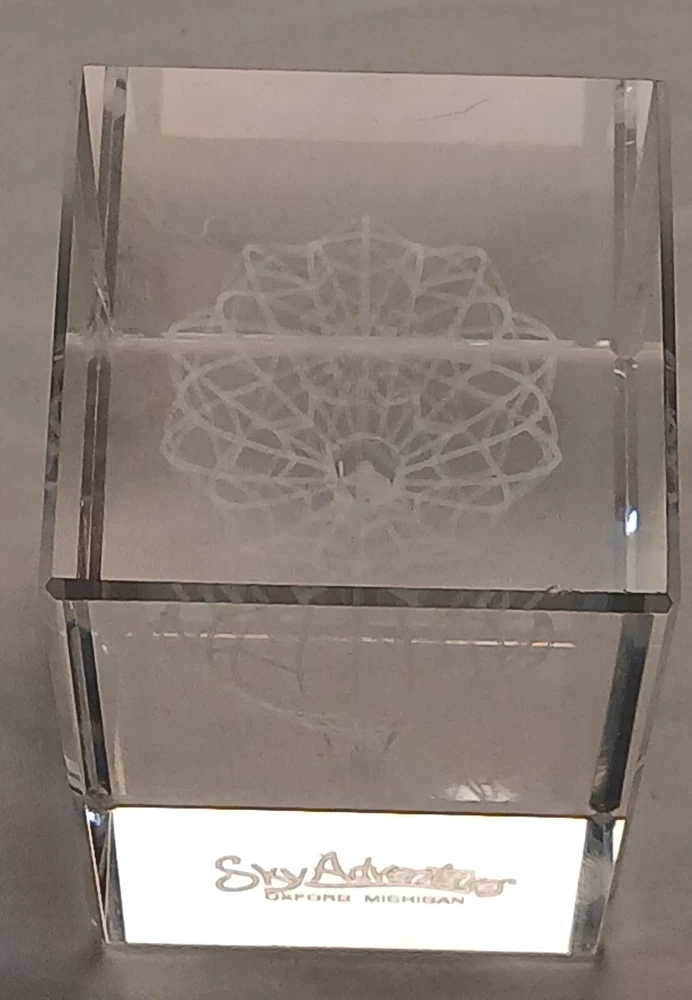 This item is pre-owned with no damages chips or cracks. You receive the same item pictured, the tape measure is shown for size reference. Etched glass depicting a hot air balloon and says Sky Adventures Oxford, Michigan. Carefully packed and quickly shipped by the next business day