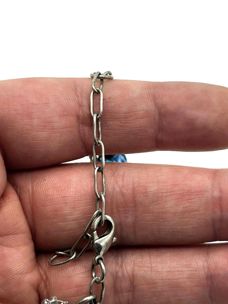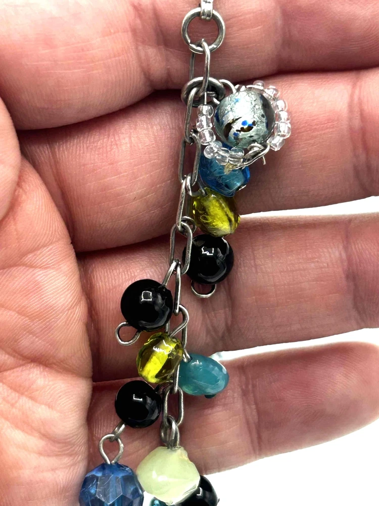Glass Bead Multicolor Chain Link Charm Lobster Clasp Bracelet