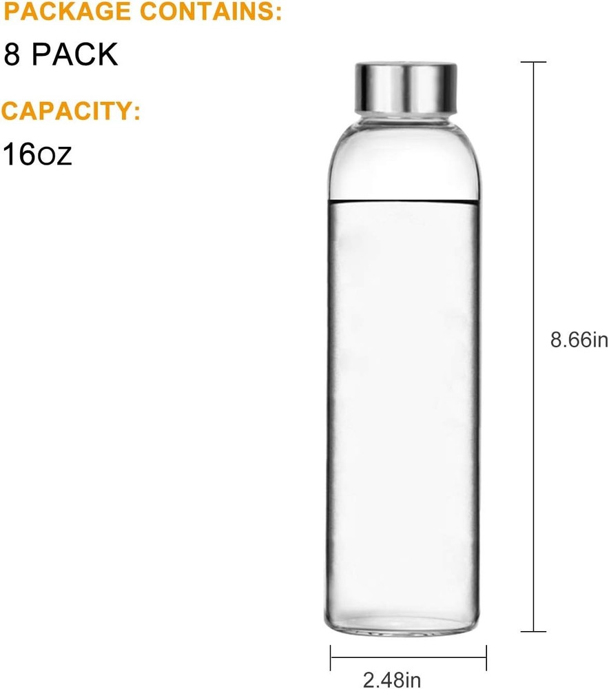 Store New Arrivals Add to Favorite View Feedback Contact Glass Beverage Drinking Water Bottles Leakproof Cap Reusable Juice 16 Oz 8 Pack Description Item model number 16oz-8Pack Style Glass Bottles with Lids Bottle Type Water Bottle Capacity 16 ounces Number of Items 8 Batteries Included? No Unit Count 8.0 Count Batteries Required? No Finish Glass Material Stainless Steel Model Name Glass Water Bottles Package Information Glass Finish Type Glass Specific Uses For Product Travel Included Components Caps Reusability Reusable Item Weight 0.078 ounces Material Type Free Bisphenol A (BPA) Free Special Features Leak Proof, Wide Mouth Special Feature Leak Proof, Wide Mouth Color Silver Shape Round Recommended Uses For Product Juices, Travel Product Dimensions 2.48"W x 8.66"H Product Care Instructions Hand Wash Only Value Pack Glass Water Bottles:Hold 500ml,16oz, made by glass,clear color,8 pack in safty package,each glass bottles with stainless steel caps Safe First Beverages Bottles;Its made by heavy duty glass,BPA free,none toxie, none smell.no odors,food grade material,way much better than plastic ones! Best Quality Juice Bottles:Classic round design,easy to hold on your hand,lead free glass construction,durable material,mouth is wide bough to drink and fill up,stainless steel caps ensure a leakproof tight seal,no leak, no mess, no waste! Useful Glass Bottles:Juicing your favourite drink anytime!sirtight seal mak eit fresh for longer,and also its so easy to carry out,prefect size fit any bags, also ideal for keeping water, drinks, brew, coffee, tea, sauces, salad dressing, kefir, fermented drinks ready to go anytime Easy Clean Drinking Bottles:These juice bottle wide mouth enough to make everything easy from filling and cleaning up, just brushes,wash with water simply with soap, and disheware safe too! Product description Glass Water Bottles for Kombucha,Tea,Juicing Bottles Beverage Bottle Milk Bottles With Caps,Liquid Storage Jars Bottles VERSATILE ALL-PURPOSE BEVERAGE BOTTLES The exterior of the cap of the this bottle is stainless steel,each cap features a silicone ring to provide a leakproof tight seal. These glasses are made from premium food grade leadless glass,also bpa and toxic free,which is healthy for your day-to-day drinking water needs,it will not leach chemicals or taste like metal cotnainers. Each set come in a set of 8 pack clear glass water bottle and stainless steel lid,each glasses can hold 16 fluid ounces capacity, measures 2.48 inches base width and 8.66 inches height. REASON FOR CHOOSE OUR GLASS VINTAGE BOTTLES Best Milk Bottles Ecxellent Storage Bottles Easy Carry Drinking Bottles Hom Brew Choice Great As Gift Excellent To Kids,With Lids Dishware Safe Perfect For Any Occasion Ideal For Serving All Of Beverages And Drinks Daily Breakfast And Parties!!! Round Classis Design Reuseable Glass BPA Free Toxic Free Safty Package Are you looking for the best glass bottle for your daily use? Value Glass Bottles Set Best Quality Juice Bottles Leakproof Tight Seal Caps Our stylish and functional glass water bottle will be a helpful solution for you!!! Easy Carry for Travel or Party This bottle has a perfect mouth size for no spill drinking,suitable for party,travel or gym routine and more,fits most backpacks or cup holder,lightweight but durability so you can comfortably carry it for ease for use while on the go. Easy Clean Water Juice Bottles These juice bottle tends to wash easily and without any flavors or stains,the mouth wide enough to make everything easy from filling and cleaning,just wash them wiht soapy water or simply put them into the dishwasher(Except the lids). Useful Glass Bottles The body of glass bottle is made of premium qulaity glass that is safe to use,not stain or carry odor which make it suitable for green smoothies,kombucca,coffee,juices or beverages. ABOUT US We offer the best prices around on high quality products. Our E-store includes media such as books, movies, music and games while offering electronics, toys, sporting apparel, clothing, tools, general home, garden items and more. SHIPPING We are always working hard to ensure your package arrives as soon as possible. Please understand that some factors like weather, high postal traffic, and the performance of shipping companies are outside of our control. We offer free shipping to the lower 48 states and ship within 2 business days of payment, usually sooner. We do not accept P.O. Boxes. Please provide a physical address. For shipping outside of the continental USA, we only use eBay's Global Shipping Program.The item is shipped to KY and then sent to the rest of the world. International customers are responsible for all duties and taxes. Continue to check out in order to calculate costs for shipping the item to your country. Messages regarding eBay's Global Shipping Program MUST be directed at eBay EXCLUSIVELY. RETURNS We offer a 30-Day Return Policy on items which you are not completely satisfied with. You have the option for a full-refund or an exchange of the item. No returns are available on items shipped outside of the USA. PAYMENT We accept PayPal. CONTACT US This page content is yet to come Please ad us to your favorite seller and visit again later Thank You CUSTOMER SATISFACTION We try our very best to make sure every customer is completely satisfied. If there's a problem, message us! We're happy to help. WE ACCEPT Copyright © 2021 AutoDS. | All Rights Reserved