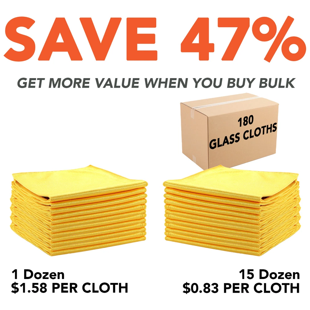Smart Choice Glass Cleaning Cloths (Packs of 12) Microfiber, Lint & Streak Free, 16x16, 3 Color Options (Discounted Cases of 180 Cloths Also Available) PREMIUM QUALITY : Smart Choice cloth is 270 GSM one of the heaviest and thickest microfiber shiny glass cloths out there. Microfiber cloth have a soft, plush touch, highly absorbent, quick drying, and thick towel set wicks water fast to keep you dry. They deliver extreme absorbency, so at the same time ensure quick drying. LINT FREE : Use only the best! Arkwright Microfiber Cloths are designed to catch any lint, dust, or dirt that are lying around. Perfect cleaning rags ideal for streak free and lint free cleaning they don’t just move around the dirt when they become older, they continue lifting the dirt up. Don’t delay getting these cloths and start making everything shine! PACKAGE : A large pack of 12 makes our Shiny glass cleaning cloths almost cheaper (per towel) than other smaller packs. Pack of 12 with perfect size 16" x 16” will last longer between washes. Use a different towel for different surfaces for efficient cleaning. Cases of 180 also available. MULTI-PURPOSE : Use Smart Choice Microfiber cleaning cloths with all cleaning supplies and for all cleaning needs. Perfect to use as a cleaning cloths for glass cleaning, kitchen, bath cleaning, eyeglass, screen, lens, mirror, camera e-cloth cleaner, polishing cloth and as the perfect car cleaning cloth. MACHINE WASHABLE : These shop towels are perfectly machine-washable, dry fast, and do not use bleach. Microfiber cloths can be washed and reused hundreds of times without losing their efficacy and will last longer between washes. You can launder these cloths up to 500 times.
