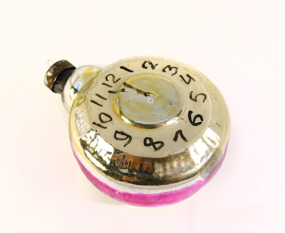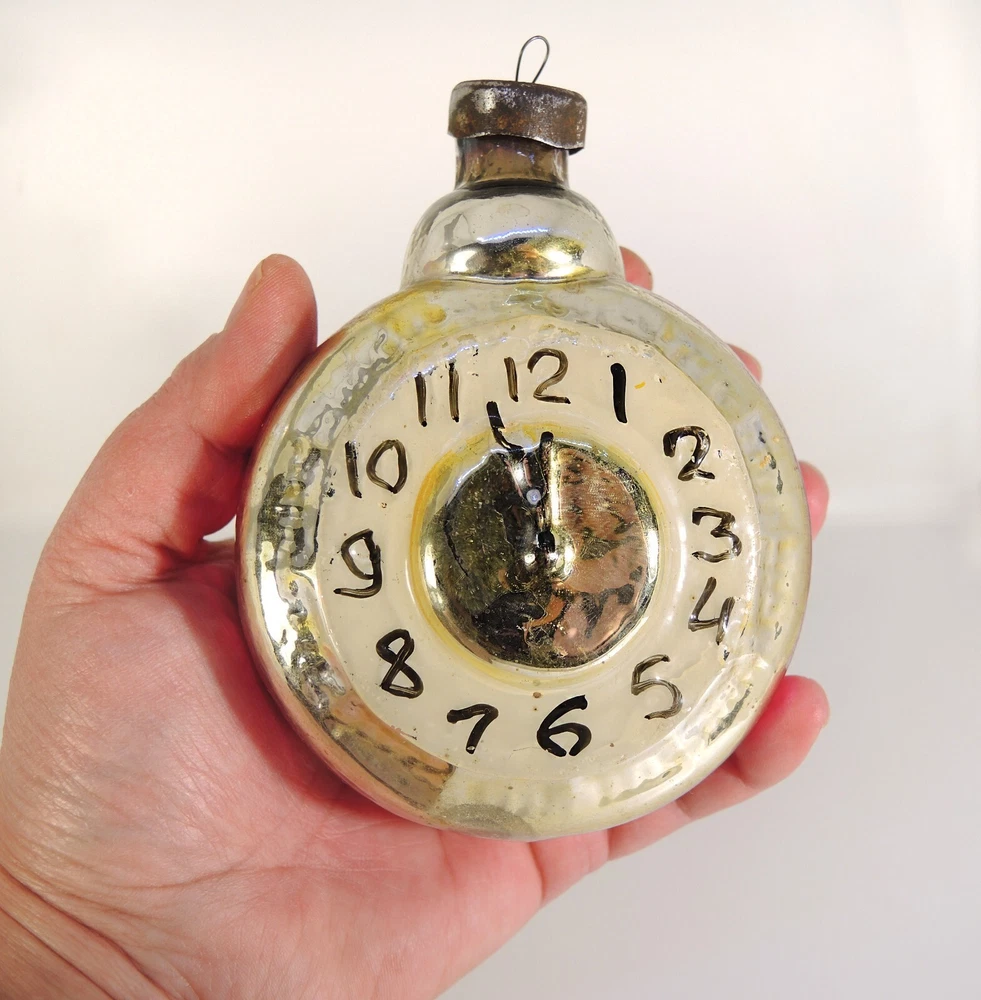 Glass Clock 12 Christmas Ornament Vintage Hand Painting New Year Big Soviet Toy
