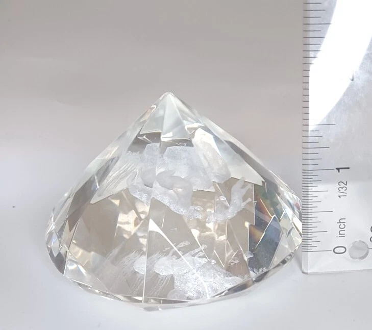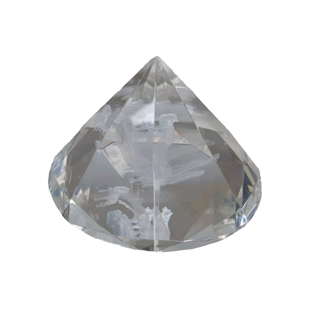Glass Crystal Clear 3D Laser Coyotes Paperweight Cut Diamond Shaped Rare!.This is a used item with minimal wear in good condition.Beautiful piece for a gift for any Naturist enthusiasts.