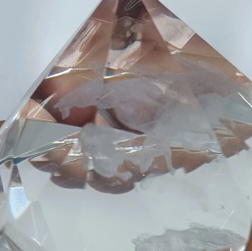 Glass Crystal Clear 3D Laser Coyotes Paperweight Cut Diamond Shaped Rare!