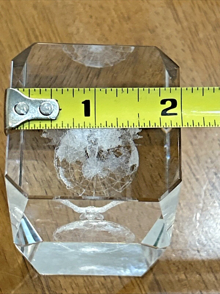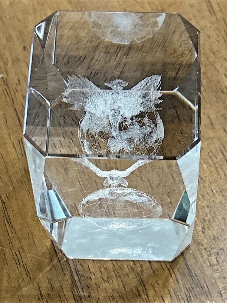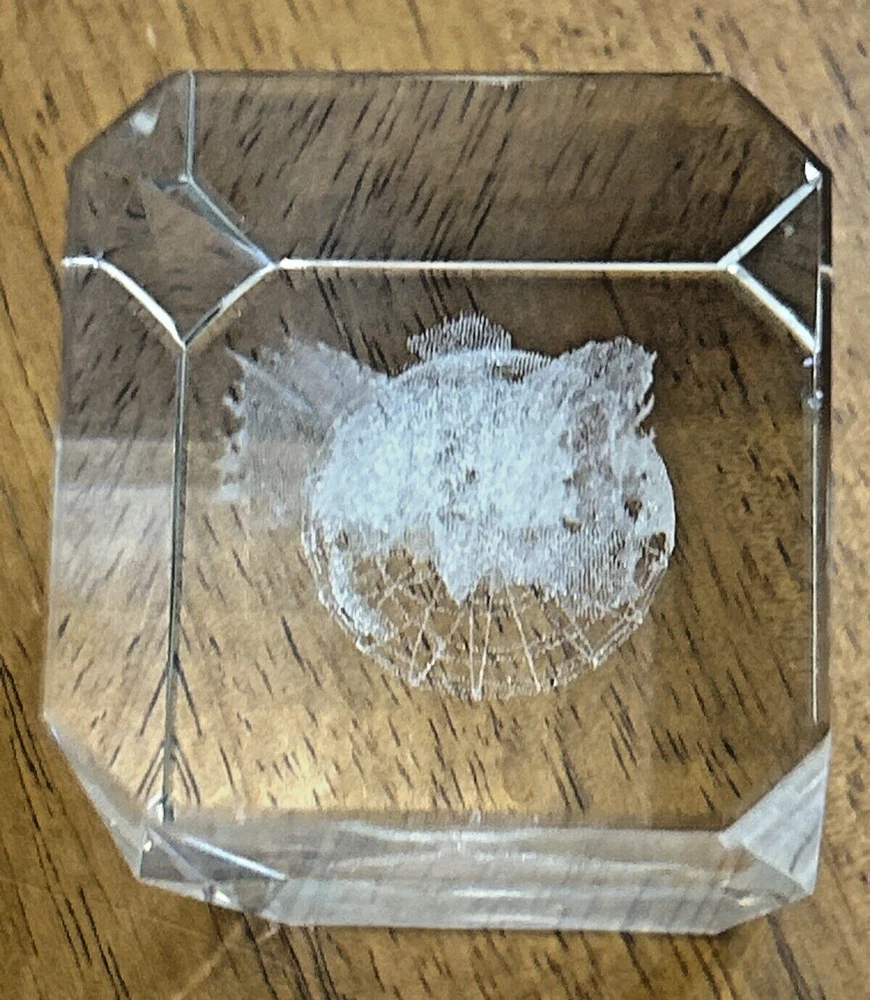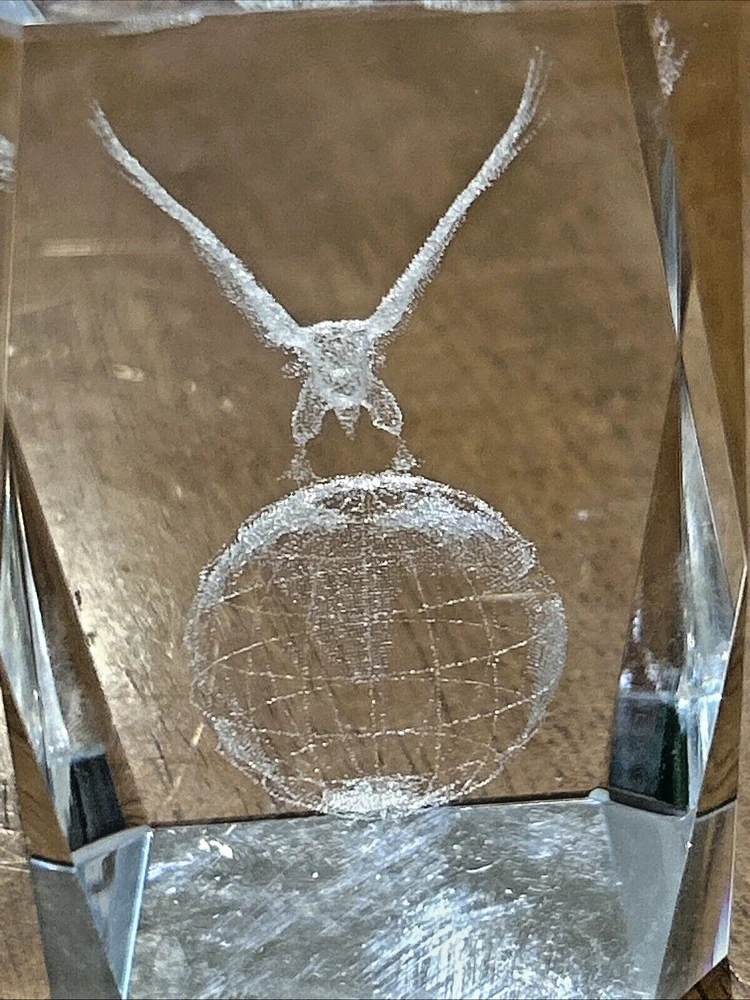 Glass Cube Eagle on Globe Image Paperweight 3D Fine Laser Etched 3" X 2" No Box Beautiful laser cut glass cube with Bald Eagle standing on the Earth Very good pre-owned condition - no chips, cracks or scratches 3" X 2" Tall Beveled corners Elegant paperweight or desk decoration Thank you for visiting Magpie Revibe ! 78213990125 H