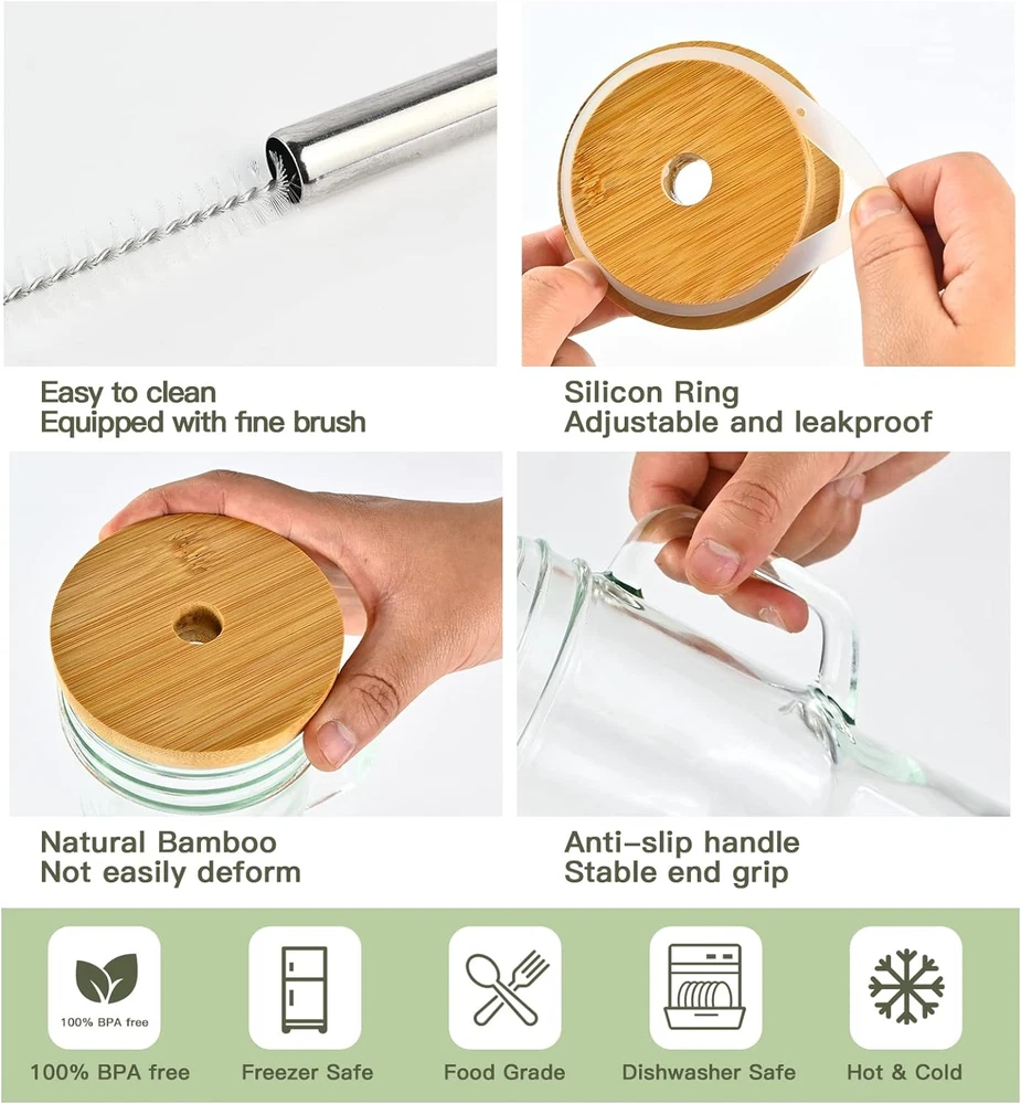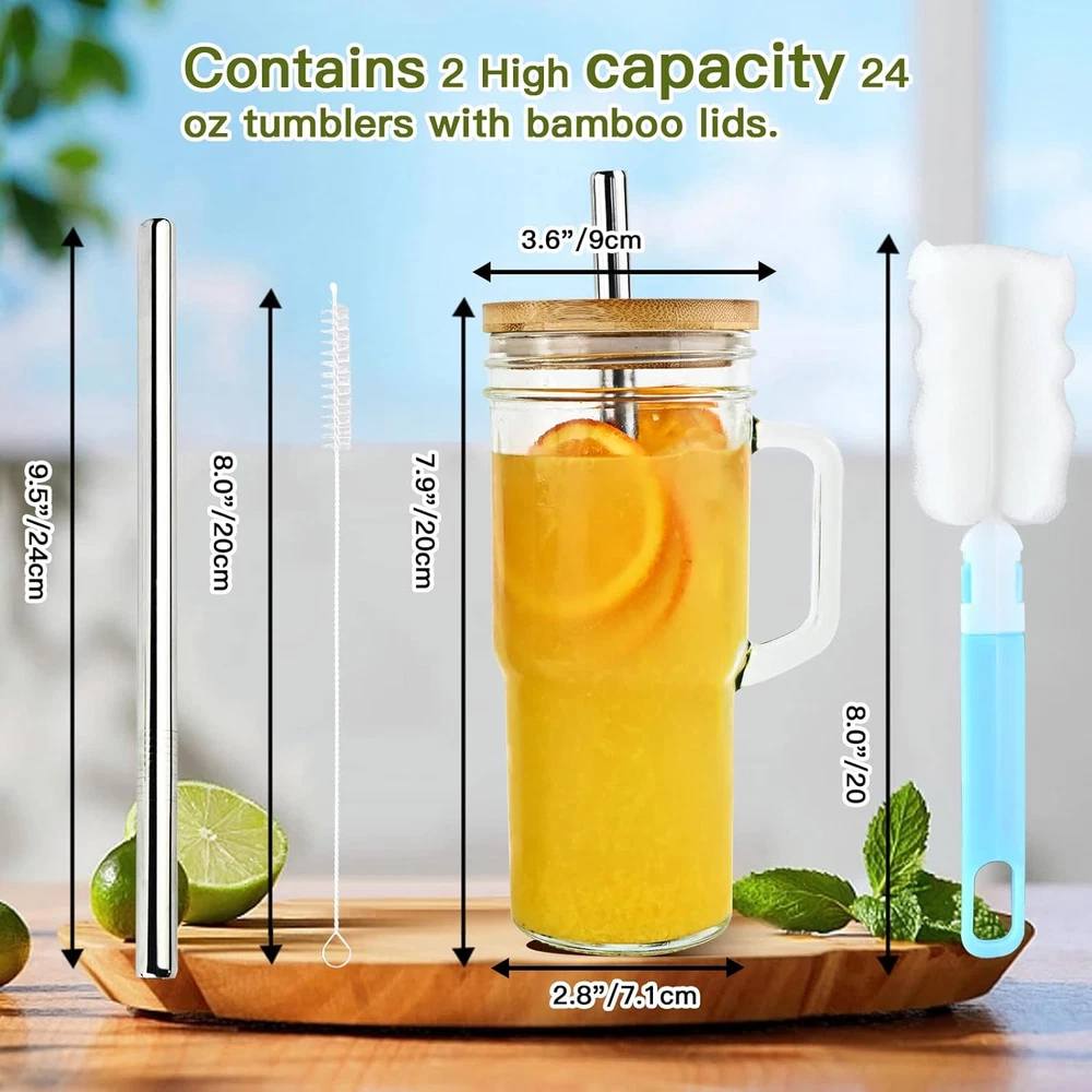 Glass Cups with Bamboo Lids and Straws,24oz Tumbler With 2-Pack Car cup