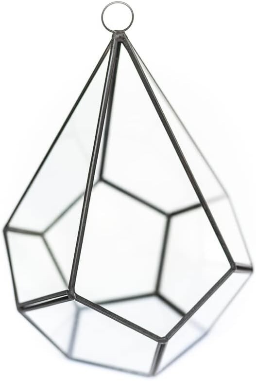 More About Our Glass Diamond Terrariums This multifaceted glass diamond terrarium with black metal accents is sleek and modern. Great for displaying multiple small plants or one medium sized plant. Display your plants alone or add river rocks and moss for added demension. Black link chain included for hanging. This diamond terrarium can also be placed on any flat surface. More About Air Plants Air plants are easy-care house plants in the genus Tillandsia. Air plants are unique because they do not need soil to grow. They are epiphyte plants native to Central and South America. They only need light, water and air to survive. They are great for small spaces, as accents, home decor or party favors. The options are unlimited – Tillandsia can stand alone or pair with an accessory such as a terrarium, ceramic hanger, cork bark, driftwood, and more! Air plants also make great gifts – They are the gift that keeps giving! Air plants reproduce by producing offsets or “pups” from the base of the plant after they show off their spectacular bloom. Every order comes with care instructions. Multiple Uses Air plants add beauty to indoor and outdoor spaces. Place them in terrariums, wall planters, containers, globes and use them to stylize vertical gardens displays. As a succulent alternative, Tillandsia (air plants) can decorate events like weddings, birthdays, for Easter and Christmas. Use them as party favors, Mother's Day gifts, centerpieces or as unique gifts. Easy-To-Care-For Air Plants (Genus: Tillandsia) are hardy bromeliad plants from Central and South America that don't require soil to grow. Simply soak them in water for 20 to 30 minutes once a week and let them dry out. They require indirect but bright light. A care instruction card from Air Plant Shop will be included in every order. Hand Packed & Picked Our shippers are trained to only send the healthiest living plants. We pack every order with quality and care. All our plants come with a 30 Day Guarantee. Let us know if you are not completely happy with your order and we will send you new plants. We have a variety of plants available. Select anywhere from 5 to 5,000 plants we will ship them out the same business day if the order is made by 3 PM Eastern Time Monday-Friday. About Blooming & Color Plants will not always arrive in bloom with red and purple color. However, most will bloom 2-3 times a year. See photos for what the non-blooming green plants look like Air Plant Care Tips Do not plant your air plants in soil. Do not let them stay wet for long periods of time to avoid rotting. Let them dry completely before placing in a glass terrarium. You may cut the unsightly roots off and peel or trim off the brown leaves. Some species have naturally dark bases. Where To Use Air Plants In a terrarium or ceramic holder As a desk plant On a shelf or in a decorative bowl Table centerpieces Party favors On a porch Attach to a tree Pair with driftwood, seashells or cork bark