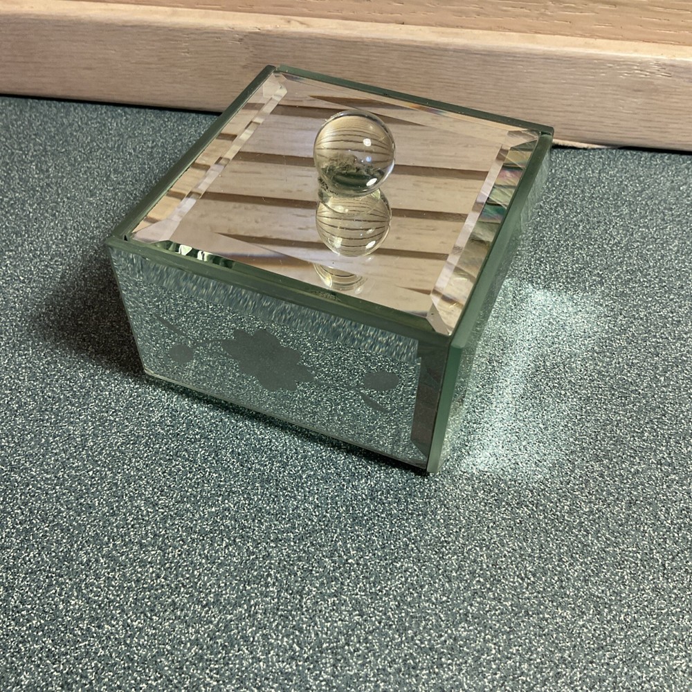 Material: Glass Type: Trinket Box Occasion: All Occasions Brand: Unbranded Color: Clear Item Width: 2 In Item Height: 2 In Care Instructions: Clean with Damp Cloth Item Length: 3 in Country of Origin: Unknown Item Weight: 5 Oz Shape: Square Subject: Trinket Box Finish: Mirrored