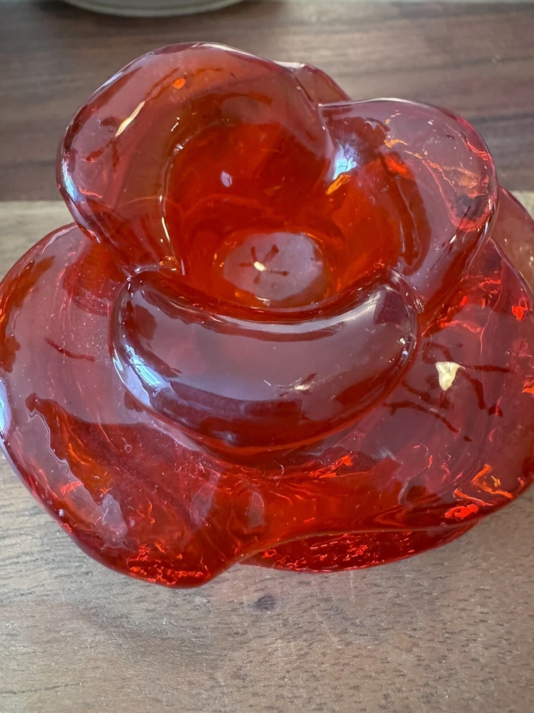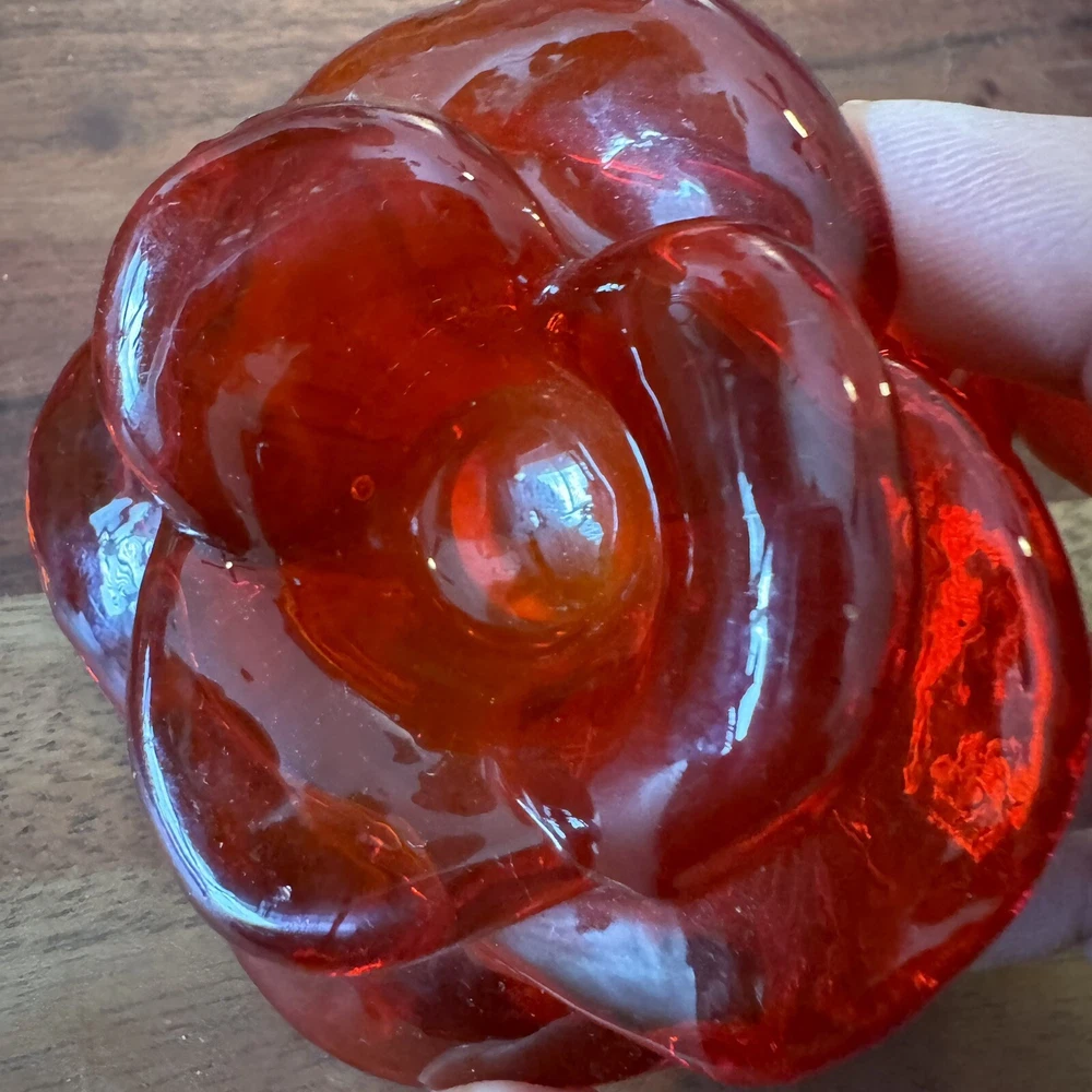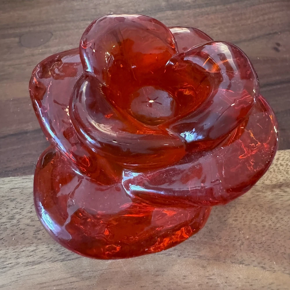 Glass Red Rose Paperweight 3.5" Crystal Light Catcher