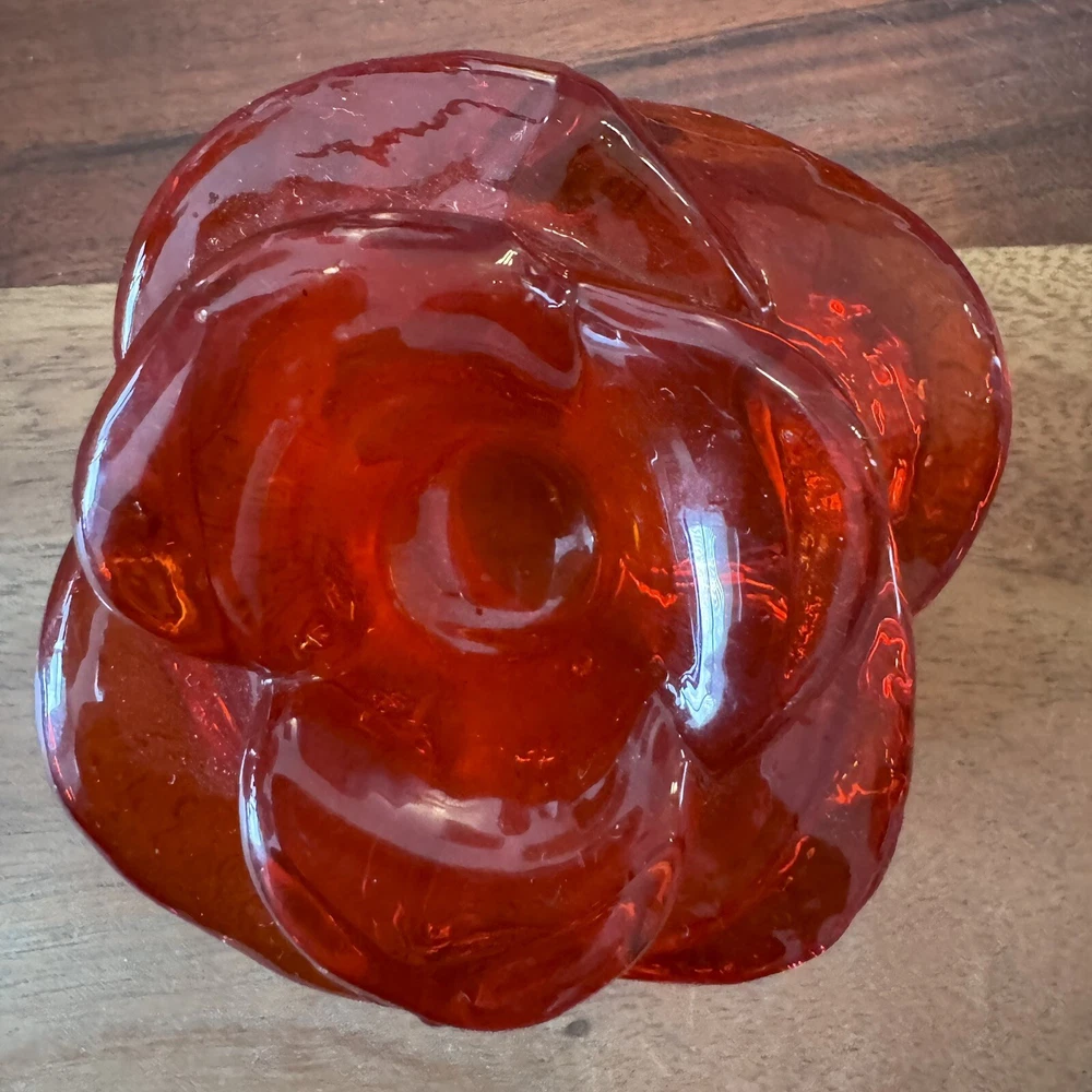 HomeGlass Red Rose Paperweight 3.5" Crystal Light Catcher