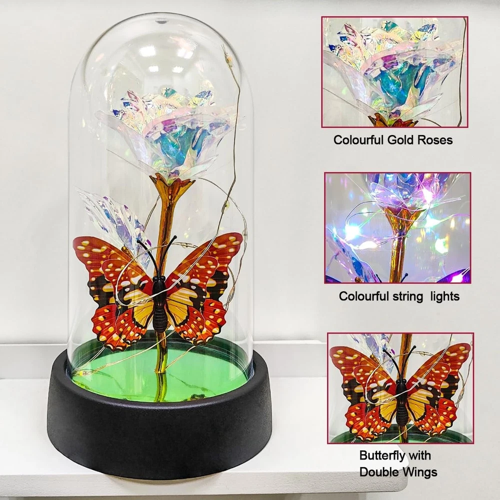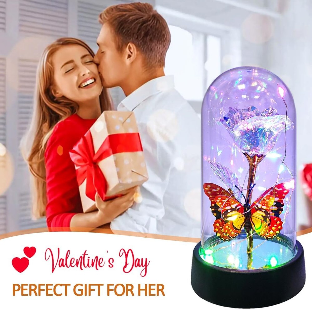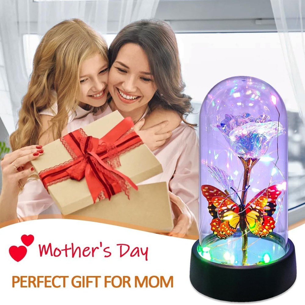 Free eBay listing template designed by dewiso.com Glass Rose in Glass Dome, Light Up Flower, Eternal Rose - Valentines Day Gifts for Her, Mothers Day Roses Gift for Mom, Womens Gifts for Christmas - Galaxy Rose, Birthday Gift FREE AND FAST SHIPPING! About this item 【Eternal Rose】Light up flowers, the never-fading glass roses, symbolize eternal love and beauty. The colorful roses are more like a rainbow, full of infinite hope. And galaxy rose will bring women infinite love and beauty, mothers day gifts for mom,mothers day gifts for wife,women,grandma,etc. Hurry up and create more surprises on the upcoming special day with this love-filled forever roses. Perfect mother's day gifts, mother's day gift ideas, mothers day gifts for mom from daughter 【Enchanting Design】Roses are protected by a tough glass dome, this guardianship is like a long-lasting companion of love, use this eternal flower as a gift for your favorite person and let forever roses continue to keep watch for you. Surrounded by a string of LED lights, the entire glass dome shines with warm multicolored lights, Rose flower it can be perfectly used as a decoration for bedrooms, living rooms, bookshelves, and tables to add sparkle to your life. Rose gifts for women 【Sweet Butterfly Flowers Rose Gifts for Mom Grandma Wife】Warm rose flower gifts for mom women grandma, womens gifts for christmas. Galaxy rose powered by 3 Alkaline Button Coin Cell power(Battery included), led lights are twined around rose, charming colorful light up in night, it adds a romantic and sweet atmosphere. Valentines day gifts for her, gifts for girlfriend, enchanted sparkly rose, light up rose in glass dome, glass rose in glass dome 【Best Women Gifts】The galaxy rose will came with a beautiful packaging box, so that you could give directly without spend time on package this mothers day,christmas,valentines day,birthday. Great romantic rose flower gift for her,women gifts for mother's day,mothers day gifts for mom,anniversary gifts for wife,womens gifts for christmas,birthday gifts for women,gifts for women 【Lasting Beauty】Keep the mothers day gifts from daughter indoors without management and can keep for 3-5 years. She will be happy to look at it and will feel that you are by her side all the time and it can be used as a small nightlight in bedroom to help sleeping. Perfect galaxy rose, forever rose, lighted flowers, rose of love Product We offer a 30-Day Return Policy on items which you are not completely satisfied with. You have the option for a full-refund or an exchange of the item. No returns are available on items shipped outside of the US . Shipping We offer Free Shipping to the US and ship within 2 business days of payment, usually sooner. We use UPS express shipping. That's why your products are usually delivered within 3 days . Contact We try our very best to make sure every customer is completely satisfied. If there's a problem , message us! We're happy to help. 24/7 live chat available.
