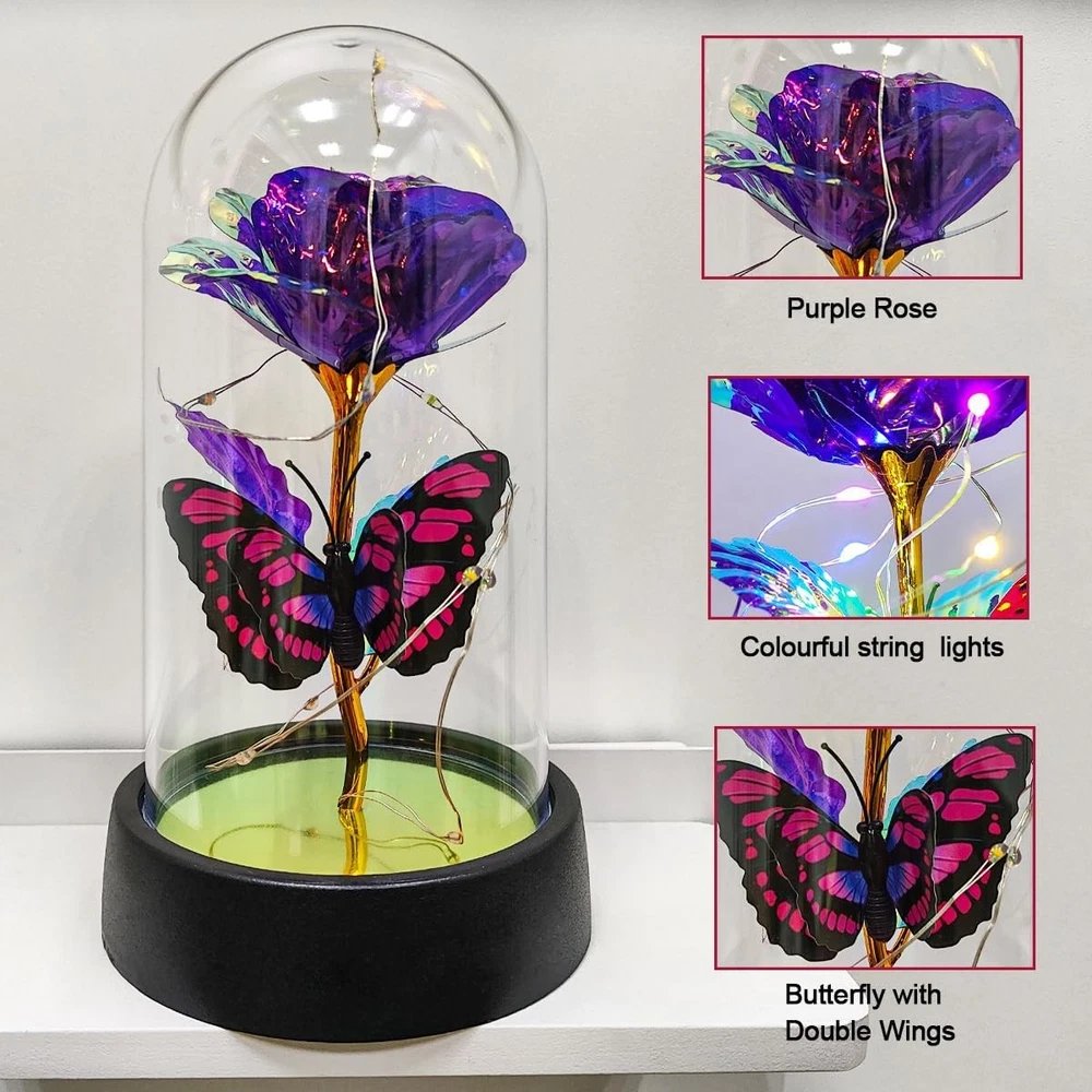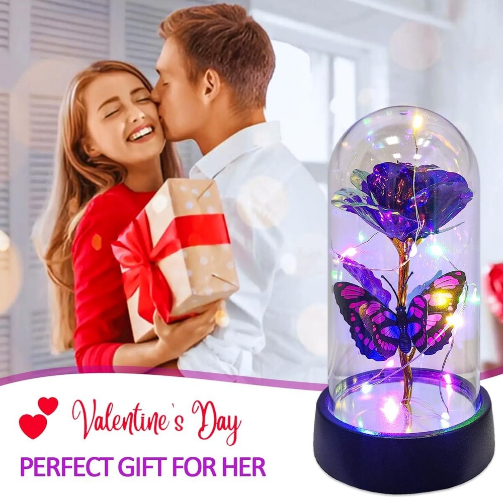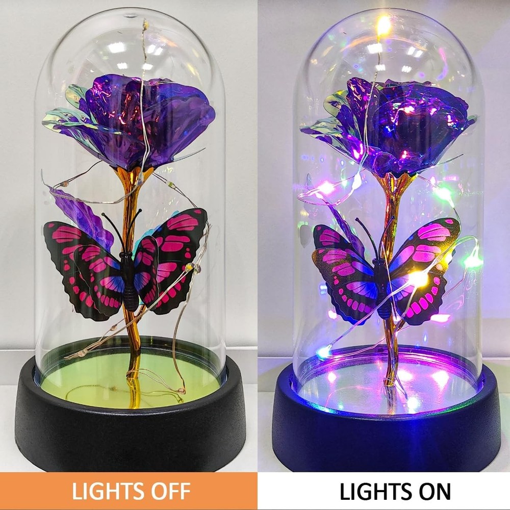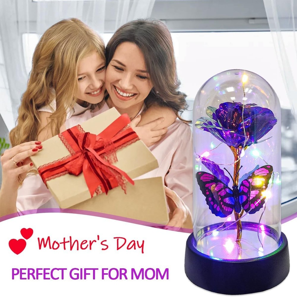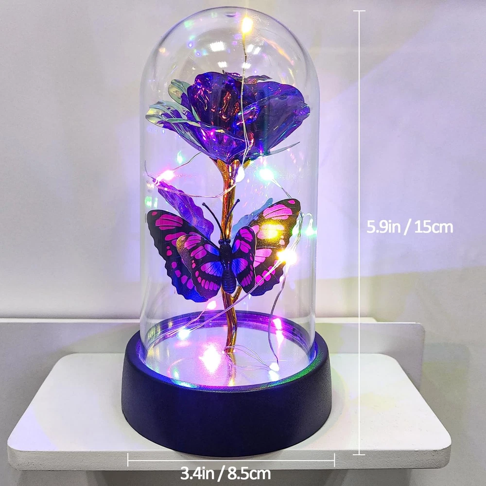 Free eBay listing template designed by dewiso.com Glass Rose in Glass Dome, Light Up Flower, Eternal Roses - Valentines Day Gifts for Her, Mothers Day Roses Gift for Mom, Womens Gifts for Christmas - Galaxy Rose, Birthday Gift FREE AND FAST SHIPPING! About this item 【Eternal Rose】Light up flowers, the never-fading glass roses, symbolize eternal love and beauty. The colorful roses are more like a rainbow, full of infinite hope. And galaxy rose will bring women infinite love and beauty, mothers day gifts for mom,mothers day gifts for wife,women,grandma,etc. Hurry up and create more surprises on the upcoming special day with this love-filled forever roses. Perfect mother's day gifts, mother's day gift ideas, mothers day gifts for mom from daughter 【Enchanting Design】Roses are protected by a tough glass dome, this guardianship is like a long-lasting companion of love, use this eternal flower as a gift for your favorite person and let forever roses continue to keep watch for you. Surrounded by a string of LED lights, the entire glass dome shines with warm multicolored lights, Rose flower it can be perfectly used as a decoration for bedrooms, living rooms, bookshelves, and tables to add sparkle to your life. Rose gifts for women 【Sweet Butterfly Flowers Rose Gifts for Mom Grandma Wife】Warm rose flower gifts for mom women grandma, womens gifts for christmas. Galaxy rose powered by 3 Alkaline Button Coin Cell power(Battery included), led lights are twined around rose, charming colorful light up in night, it adds a romantic and sweet atmosphere. Valentines day gifts for her, gifts for girlfriend, enchanted sparkly rose, light up rose in glass dome, glass rose in glass dome 【Best Women Gifts】The galaxy rose will came with a beautiful packaging box, so that you could give directly without spend time on package this mothers day,christmas,valentines day,birthday. Great romantic rose flower gift for her,women gifts for mother's day,mothers day gifts for mom,anniversary gifts for wife,womens gifts for christmas,birthday gifts for women,gifts for women 【Lasting Beauty】Keep the mothers day gifts from daughter indoors without management and can keep for 3-5 years. She will be happy to look at it and will feel that you are by her side all the time and it can be used as a small nightlight in bedroom to help sleeping. Perfect galaxy rose, forever rose, lighted flowers, rose of love Product We offer a 30-Day Return Policy on items which you are not completely satisfied with. You have the option for a full-refund or an exchange of the item. No returns are available on items shipped outside of the US . Shipping We offer Free Shipping to the US and ship within 2 business days of payment, usually sooner. We use UPS express shipping. That's why your products are usually delivered within 3 days . Contact We try our very best to make sure every customer is completely satisfied. If there's a problem , message us! We're happy to help. 24/7 live chat available.