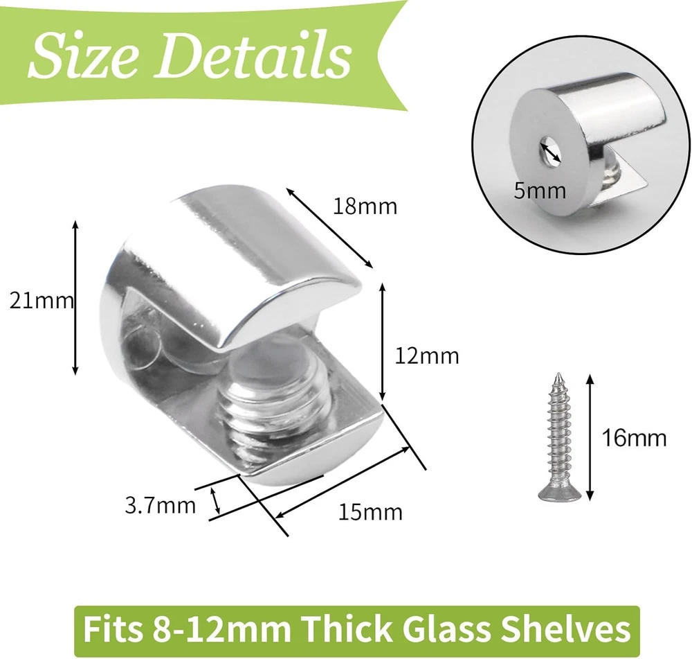 Store New Arrivals Add to Favorite View Feedback Contact Glass Shelf Bracket, 8Pcs Wall Mounted Adjustable Glass Shelf Clamp Clips Polished Chrome Zinc Alloy Glass Clamp Brackets Supports Cylindrical Mounting Brace for 8-12Mm Thick Glass Description Item model number UF-HA0083-US Part Number UF-HA0083-US Batteries Required? No Product Dimensions 1.65 x 1.65 x 1.26 inches Material Zinc Alloy Item Weight 4.8 ounces Shape Cylindrical Batteries Included? No ð£ãSize InformationãSuitable for glass shelf with a thickness between 8-12mm/0.3-0.47in. ð£ð£Please confirm the glass thickness before purchasing. ð§¡ãHigh Qualityã Cylindrical glass clamp bracket supports are made of premium zinc alloy with chrome finish, exquisite and durable. ð§¡ãAdjustable & Non-slipã Screw with rubber head, can firmly lock the glass to prevent skidding, but also can adjust to make the screw and the glass shelf better fit. ð§¡ãEasy to Installã Equipped with screws, wall mounted glass clamp brackets are easy to install. ð§¡ãWide Applicationã Perfect for fixing glass shelf, such as glass shelves of bathroom shower, wine cabinets, and display cabinets, etc. Wide Application Glass shelf hardware brackets are suitable for supporting and fixing glass shelves of your showcases, display cabinets, wine cabinets and bathroom glass storage racks. And they are also used for DIY rimless glass shelves for making storage racks. Specification -Net Weight: 132.8g -Material: Zinc alloy -Color: Silver -Size: 18 x 21mm (0.7 x 0.83in) (L*D), 5mm/0.2in (mounting hole diameter), 16mm (screw length), 3.7mm/0.18in (thickness) Package Contents *8 x cylindrical glass clamp *8 x screw Note 1. Please allow 0~1inch error due to manual measurement. Thanks for your understanding. 2. Monitors are not calibrated same, item color displayed in photos may be showing slightly different from the real object. Please take the real one as standard. 3. Please make sure to install on a straight horizontal surface. ABOUT US We offer the best prices around on high quality products. Our E-store includes media such as books, movies, music and games while offering electronics, toys, sporting apparel, clothing, tools, general home, garden items and more. SHIPPING We are always working hard to ensure your package arrives as soon as possible. Please understand that some factors like weather, high postal traffic, and the performance of shipping companies are outside of our control. We offer free shipping to the lower 48 states and ship within 2 business days of payment, usually sooner. We do not accept P.O. Boxes. Please provide a physical address. For shipping outside of the continental USA, we only use eBay's Global Shipping Program.The item is shipped to KY and then sent to the rest of the world. International customers are responsible for all duties and taxes. Continue to check out in order to calculate costs for shipping the item to your country. Messages regarding eBay's Global Shipping Program MUST be directed at eBay EXCLUSIVELY. RETURNS We offer a 30-Day Return Policy on items which you are not completely satisfied with. You have the option for a full-refund or an exchange of the item. No returns are available on items shipped outside of the USA. PAYMENT We accept PayPal. CONTACT US This page content is yet to come Please ad us to your favorite seller and visit again later Thank You CUSTOMER SATISFACTION We try our very best to make sure every customer is completely satisfied. If there's a problem, message us! We're happy to help. WE ACCEPT Copyright © 2021 AutoDS. | All Rights Reserved