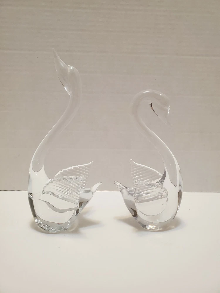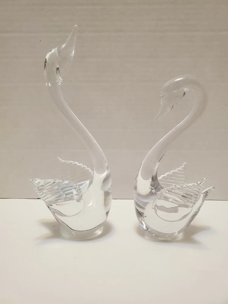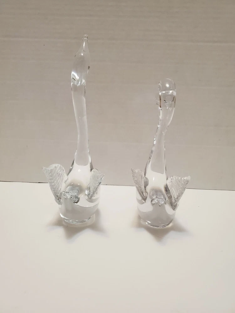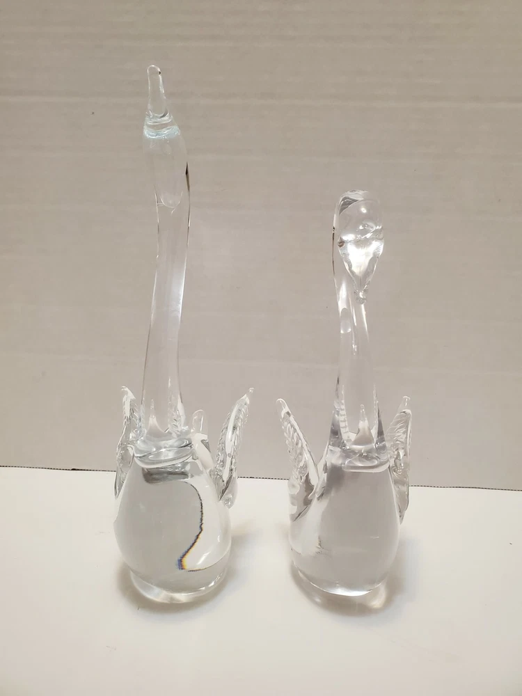 Glass Swan Figurines - Set of 2 - 9.5" tall & 7.5" tall. Please see photos for details and condition.