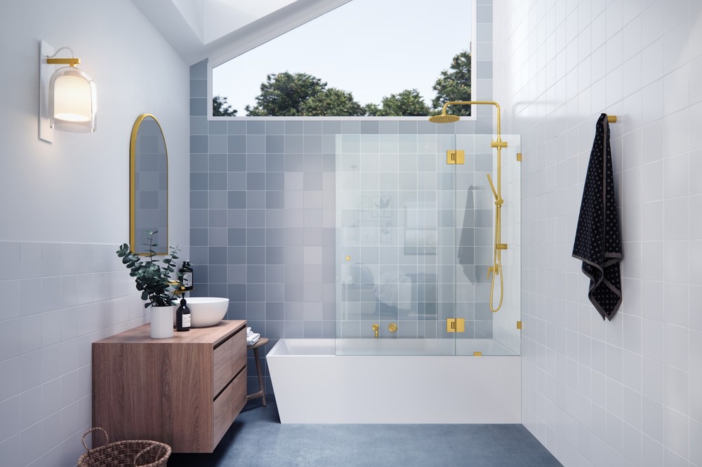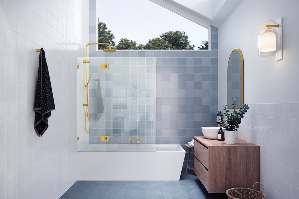 Glass Warehouse GHF-45.5 Stellar 78"H x 45-1/2"W Hinged Frameless - Brass