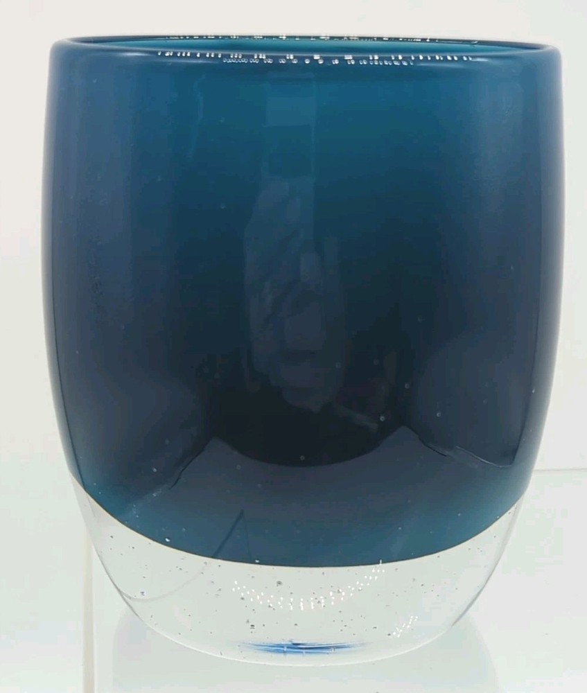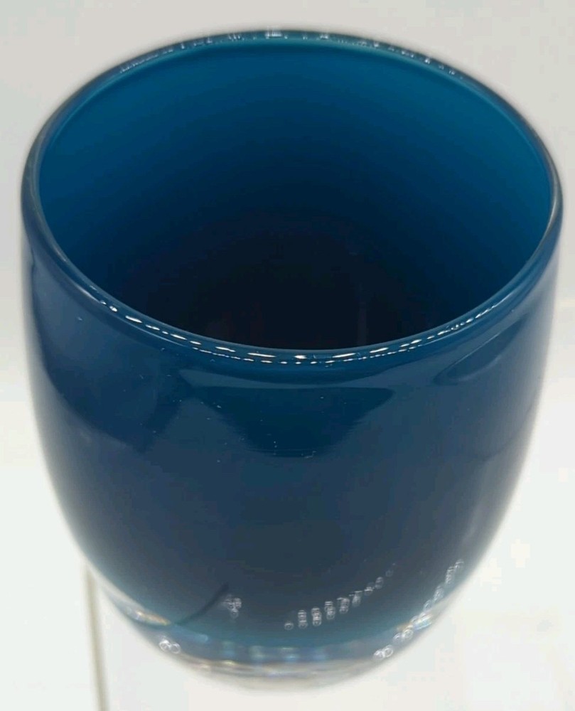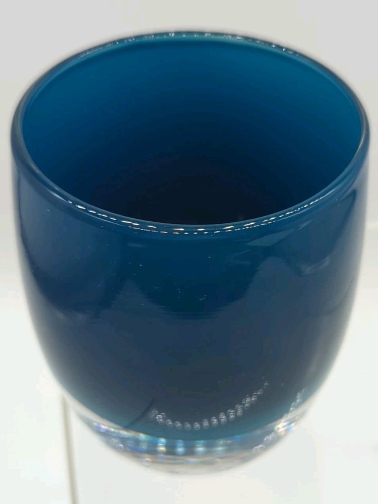 Hand blown Glassybaby votive holder from the famous Seattle-based maker. Vibrant blueish-teal hue •Sturdy glass construction Versatile home decor piece Height approximately 3.5 inches. Used but in excellent condition! No chips or cracks. Clean on the inside. See photos