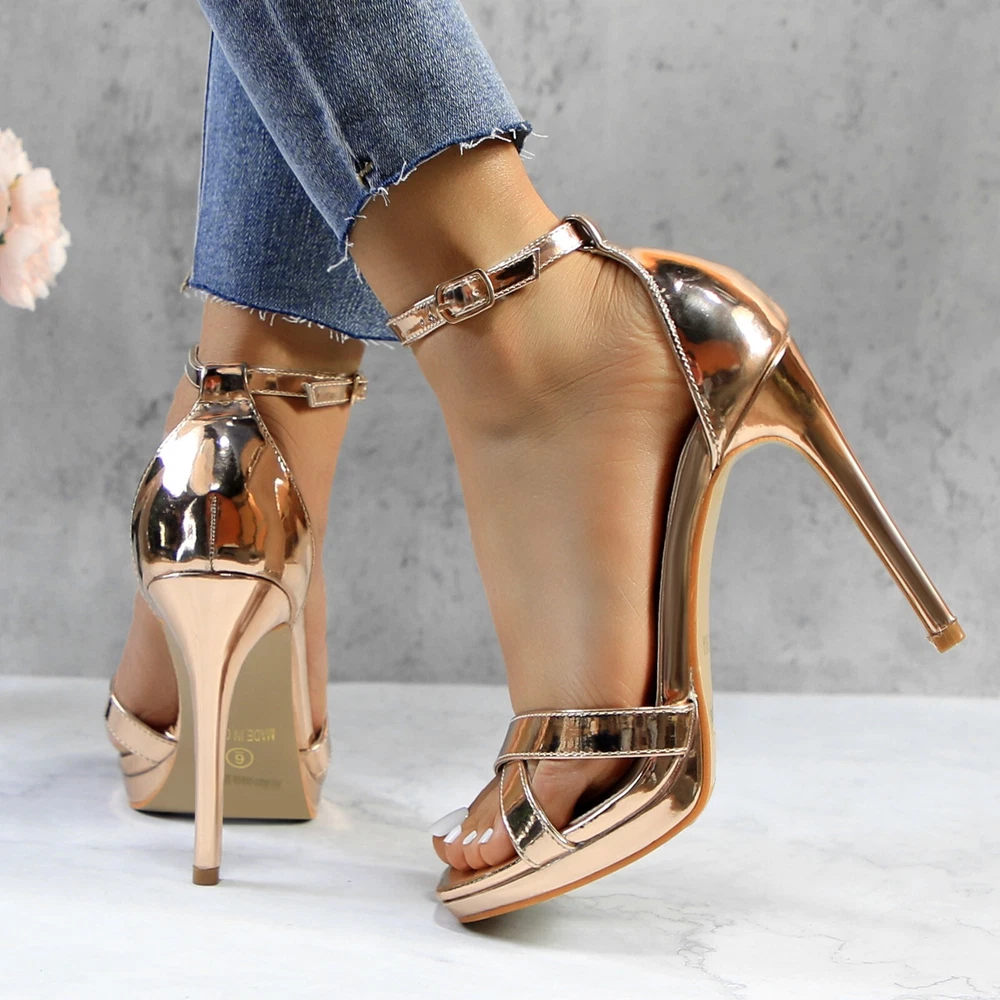 Women's Rhinestone Platform Sandals Ankle Strap Stiletto 4.7 Inch High Heel