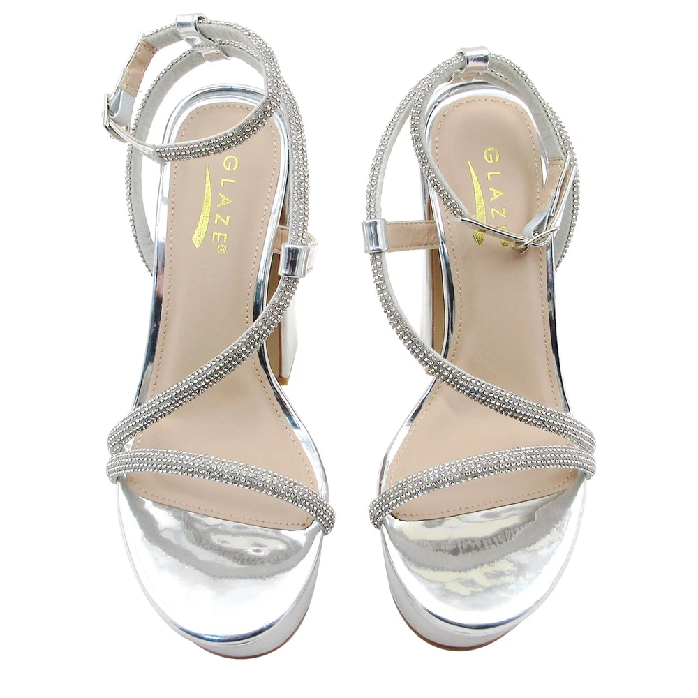 Description: These Glaze platform sandals for women feature a 5.5-inch block heel with crystal rhinestone straps. The sandals have a solid pattern with a buckle closure and are suitable for various occasions such as parties, casual outings, and formal events. They have a strappy style with PVC lining, rubber outsole, and are made of polyurethane with PVC insoles. Payment Information: We Accept PayPal We Accept Credit Card via PayPal Shipping Information: We provide Same Day FREE SHIPPING domestically within the U.S.A USPS Priority (2-3 business days) & USPS Priority International (14 days with tracking) We reserve the right to charge additional shipping fee for reship items due to wrong shipping address provided during checkout. All orders before 5PM EST will ship out same day!, Monday - Friday Ships Same Day with TRACKING! Refund & Return Policy: We offer a 30 day return policy on all items purchased from us. Please contact us within 30 days after receipt of the item for a return. Do not ship the item back to us without contacting us first. Return shipping is responsibility of buyer. These Glaze platform sandals for women feature a 5.5-inch block heel with crystal rhinestone straps. The sandals have a solid pattern with a buckle closure and are suitable for various occasions such as parties, casual outings, and formal events. They have a strappy style with PVC lining, rubber outsole, and are made of polyurethane with PVC insoles.