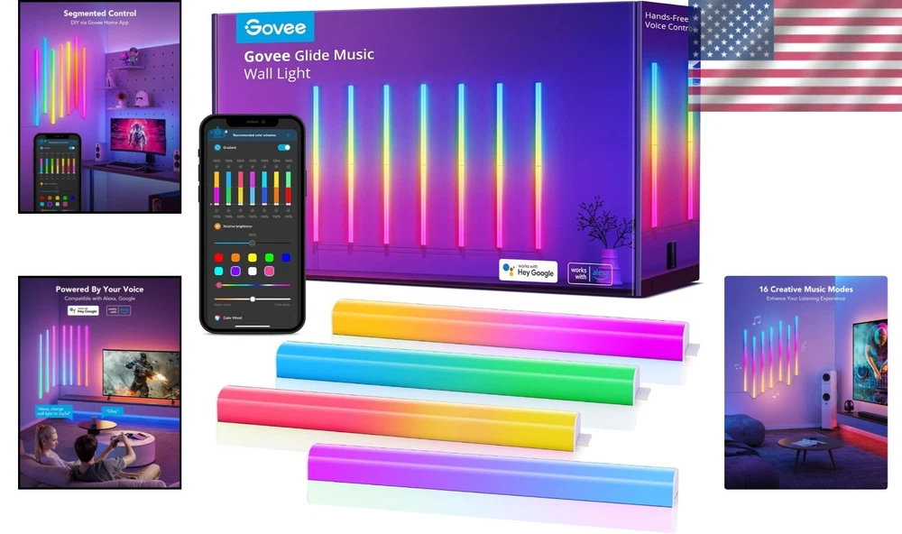 Glide RGBIC Music Wall Lights - Voice-Controlled LED Light Bars, 7 Panels Set ‹ › ‹ › ‹ › ‹ › ‹ › ‹ › ‹ › ‹ › ‹ › Glide RGBIC Music Wall Lights - 7 Panels Set A Vibrant Music Experience: Transform your space into a dynamic sound experience with our innovative Glide RGBIC Music Wall Lights. Featuring 16 different music modes, these mesmerizing LED light bars change with the rhythms of your favorite playlists, creating an ambiance perfect for any occasion, be it lively parties or festive Christmas gatherings. Mesmerizing RGBIC Multicolor Lighting: RGBIC technology displays multiple colors simultaneously, allowing you to craft a stunning rainbow effect that harmonizes with your aesthetic. Enjoy 40 pre-set scene modes available on the app, enriching your sensory experience with a plethora of color combinations. Perfect for holiday decorations, enhancing your living room or bedroom's vibe. Powerful DIY Options: With 16 million color options and effects at your fingertips via the Home App, let your creativity flow and customize your wall lights to suit your unique style. Perfect for personalizing spaces, such as your DJ area or festive living spaces. Intelligent Voice Control: Hands-free convenience: Seamlessly pair with Alexa and Google Assistant to control your RGBIC LED wall lights using just your voice. Change colors, modes, and scenes effortlessly, making your decor truly intelligent. Easy to Install: Experience hassle-free installation! Ensure your walls are clean and free of dust for the best adhesion with the secure Velcro design. Conveniently stick the lights to your walls without the worry of them falling off. Please note: The amount of light bar connections should not exceed 2 bars for optimal performance. Specifications: This set includes 7 panels , with each panel featuring 2 light sections , providing ample coverage for your lighting needs. Elevate Your Space! Bring your walls to life with the Glide RGBIC Music Wall Lights! Perfect for adding a vibrant touch to any occasion, these intelligent, customizable lights promise to impress and create unforgettable memories in your home. Make your purchase today and step into a world of radiant beauty! Shipping Free & Fast Shipping - We offer free shipping to most of the USA with a normal delivery time of 3-7 days. However, due to the current situation, additional delivery time (up to 3 weeks) may be required for some items. Alternative Carriers - We may use alternative carriers (e.g. USPS, FedEx, UPS, etc.) to ensure your package arrives safely and on time. Due to the use of multiple carriers, we are unable to provide a tracking number automatically. Handling Time - Orders are processed and shipped within 1-2 business days of receiving cleared payment. Shipping Restrictions - Shipping to Alaska, Hawaii, Puerto Rico, Guam, and other US territories may incur shipping charges or delivery restrictions. Please contact us before ordering, or your order can be refunded/cancelled. State Restrictions - There may be restrictions based on your state of purchase. For example, certain items may not be shipped to California due to state regulations. Contact for Tracking Updates - If you require tracking updates or have any concerns about the delivery of your order, please feel free to contact us, and we will be happy to assist you. Return 30-Day Hassle-Free Returns - We want you to be completely satisfied with your purchase. If you are not, you can return the item within 30 days of receiving it for a full refund or exchange. Easy Return Process - To start a return, simply contact us and we will provide you with a prepaid return shipping label and detailed instructions. Restocking Fee - There are no restocking fees for returns. However, the buyer is responsible for return shipping costs if the return is not due to a seller's error. Refund Processing Time - Refunds will be processed within 5 business days of receiving the returned item in its original condition. Payment We accept all major credit cards, PayPal, and Apple Pay for your convenience. Your payment information is secure and encrypted to ensure a safe and seamless transaction. Please complete your payment within 3 days of purchase to avoid any delays in shipping. Feedback Your feedback is extremely important to us. We strive to provide the best products and customer service possible. If you are satisfied with your purchase, please take a moment to leave us a positive review. If you have any concerns or issues with your order, please contact us before leaving negative feedback. We are committed to resolving any problems and ensuring your satisfaction. Contact Us If you have any questions or concerns, please feel free to reach out to our customer support team. You can contact us through the eBay messaging system. We are available Monday to Friday, 9:00 am to 5:00 pm EST, and we will do our best to respond to your inquiry within 24 hours. Thank you for supporting our small family business! UPC: Not Set Size: 14 pcs Item Height: Smart LED Wall Lights Lumens: Not specified Power Consumption: 48 watts Unit Quantity: 14 Occasion: Christmas,Party Features: Music Sync,40 Scene Modes,16 Million Colors,RGBIC Lighting Effects,Adjustable Brightness,App Smart Control Light Color: RGBIC,Multicolor Control Style: App Control,Voice Department: Unisex Baby & Toddler,Kids,Teens,Adults Theme: Music Room: Bedroom,Living Room,Gaming Room Material: Plastic Character: Not Set Labels & Certifications: Not Set Brand: Unbranded Type: Wall Mount Lighting Technology: LED Light Shape: Straight Installation Area: Indoor Sensor Type: Not applicable Power Source: Corded Color: RGBIC Cord Color: Not specified Number of Settings: 40 LED String/Strip Type: Not applicable Energy Star: Not Set MPN: Not Set EC Range: Not Set Voltage: 12 volts LED Chip Code: Not specified Output Voltage: Not specified Character Family: Not Set IP Rating: Not waterproof Manufacturer: Not Set Amperage: Not specified