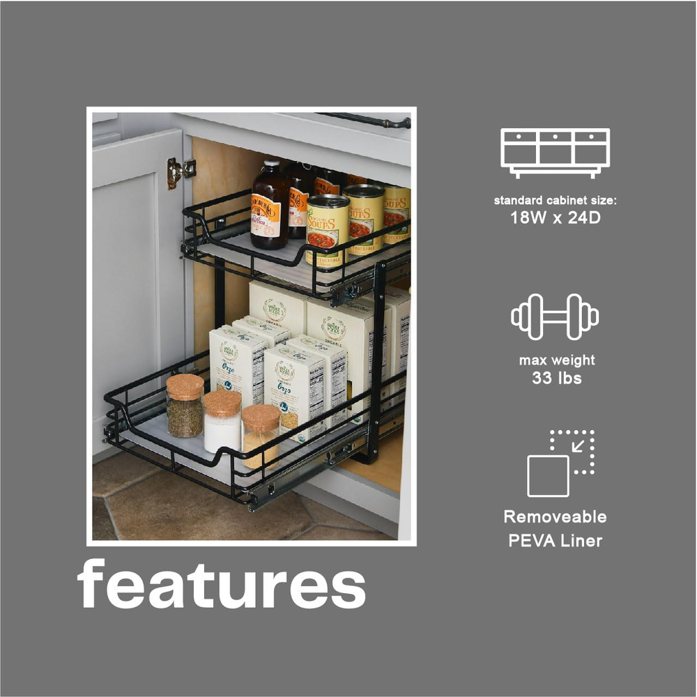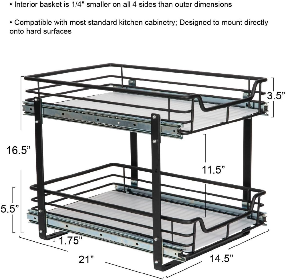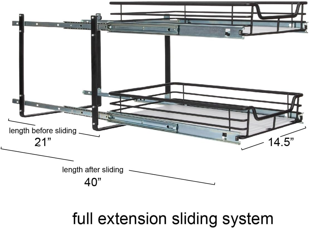 Mounting Type: Under Cabinet Product Dimensions: 20.87 x 14.49 x 15.47 inches Part Number: C41521-1 Item Weight: 23.4 pounds UPC: 705353749865 Item Width: Does not apply Item Package Quantity: 1 Batteries Required?: No Finish: Matte Item model number: C41521-1 Country of Origin: China Brand: Does not apply Color: Black Type: Does not apply Special Features: Durable Shape: Rectangular Style: Dual Slide Included Components: Hardware Pattern: Organizer Item Length: Does not apply Item Height: Does not apply Warranty Description: 1 year manufacturer. gtin13: 705353749865 Material: Metal, Steel Size: 15" - Extended