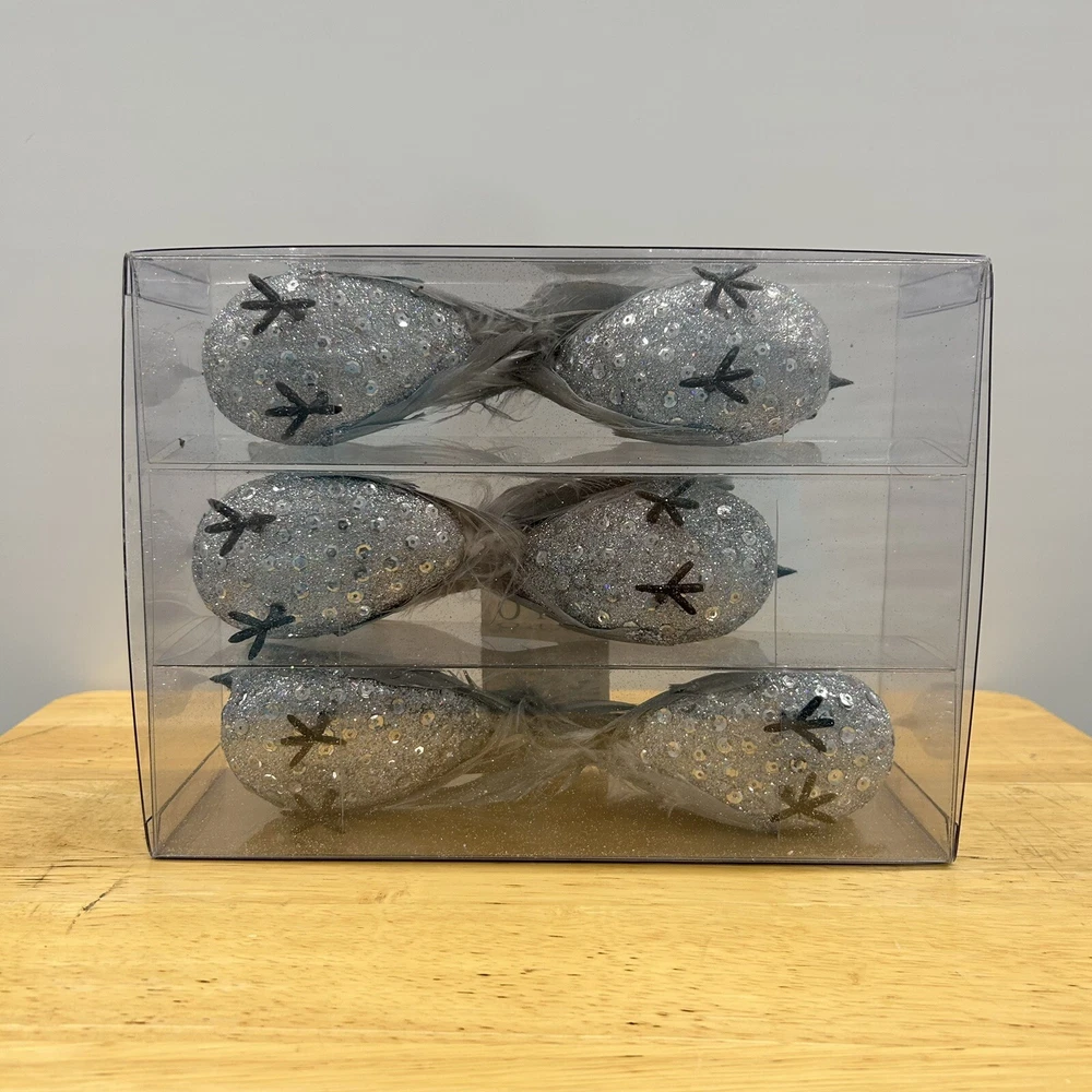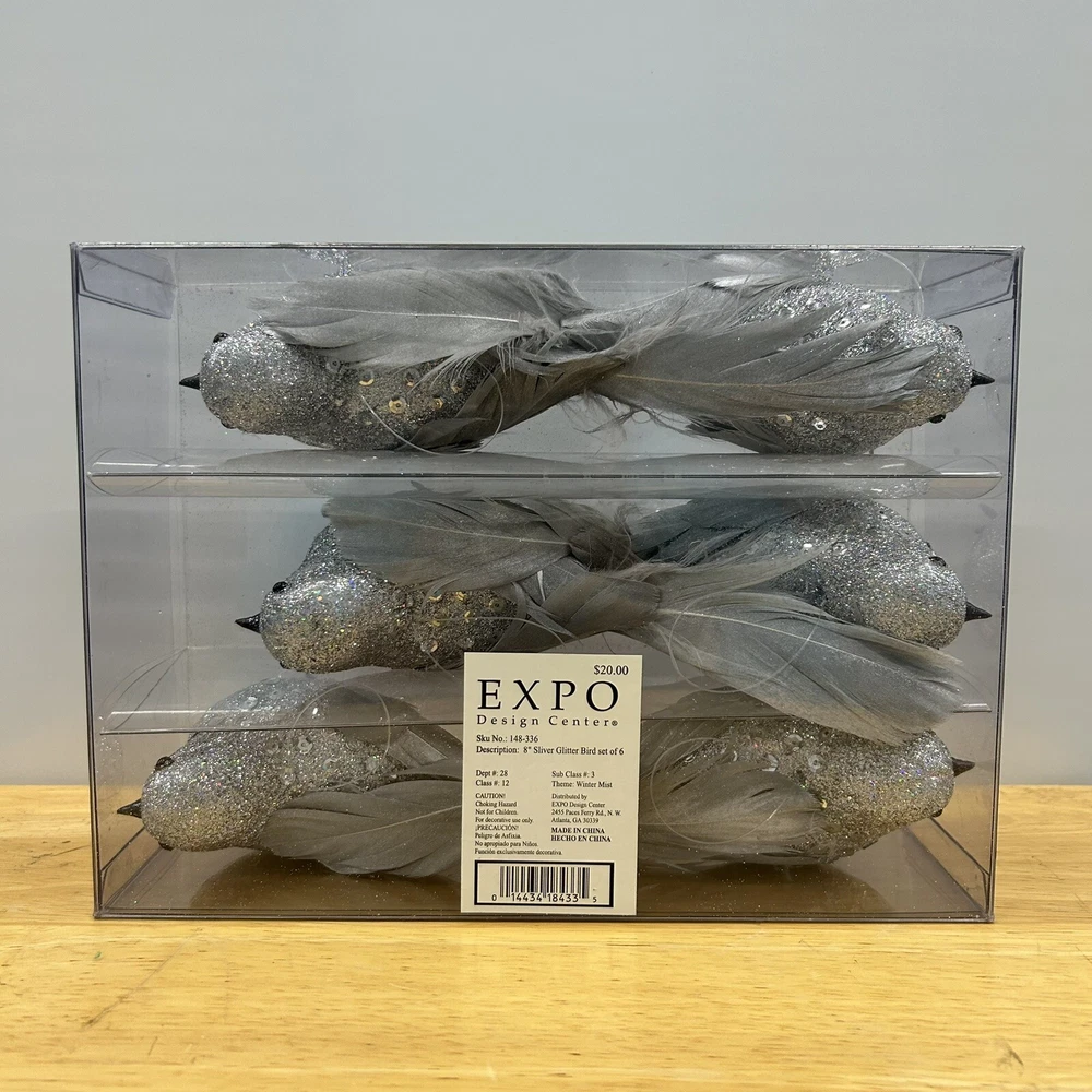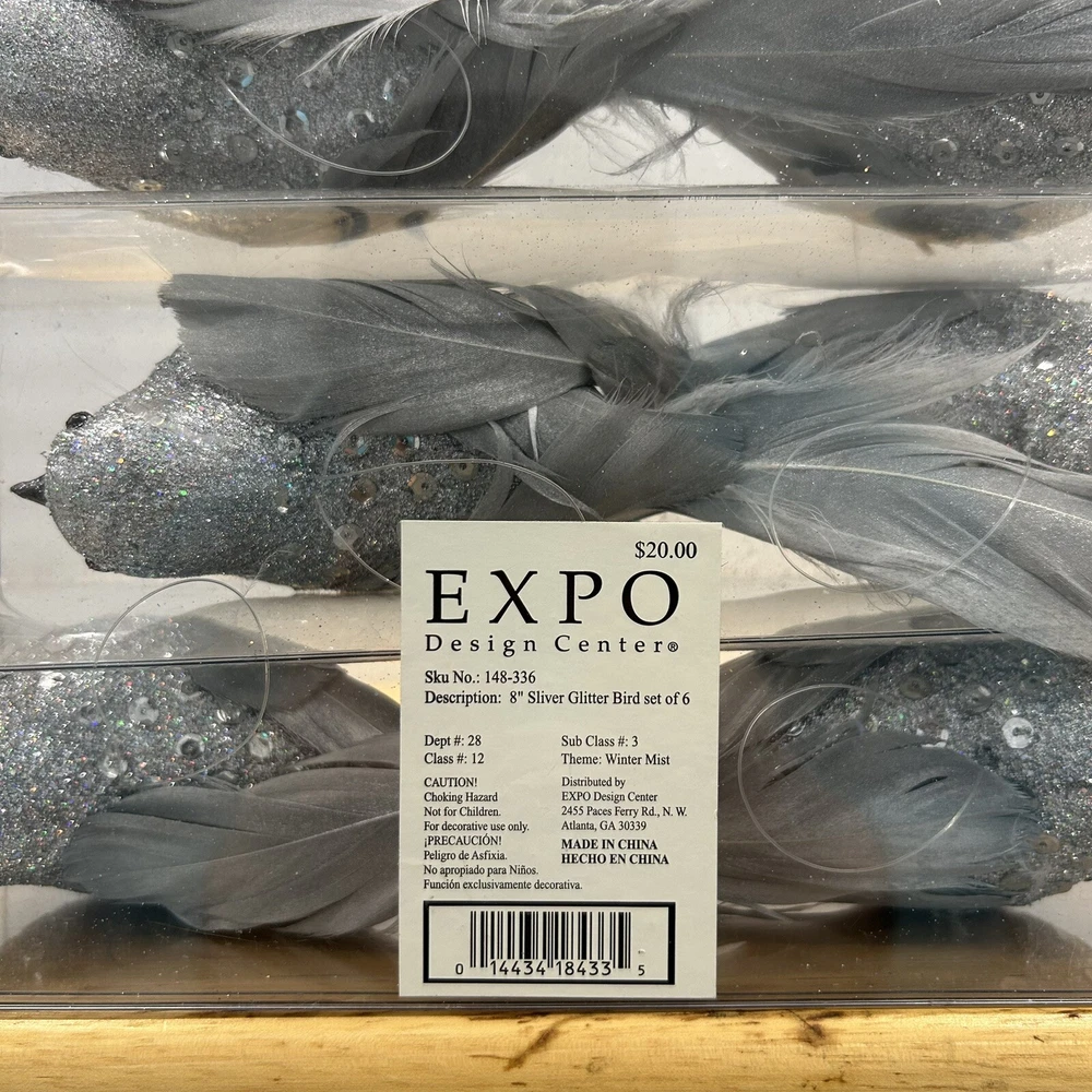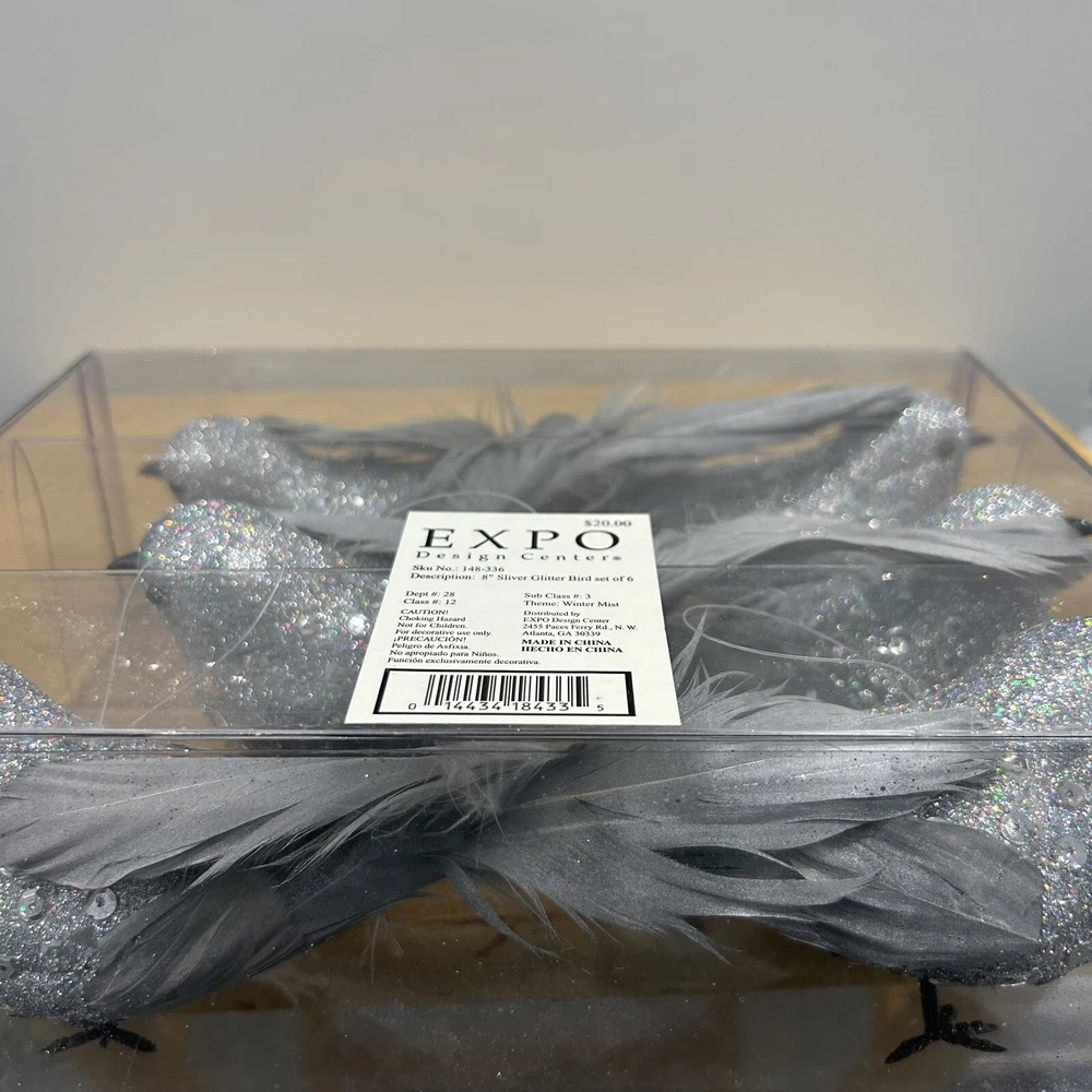 Expo Design Center Silver Glitter Bird Ornaments Set of 6 Christmas Holiday NEW. 100% Authentic. In-Hand Ready to Ship. No Major Flaws Seen. Brand New. Please see pics above for a closer look at product. Legit Seller.