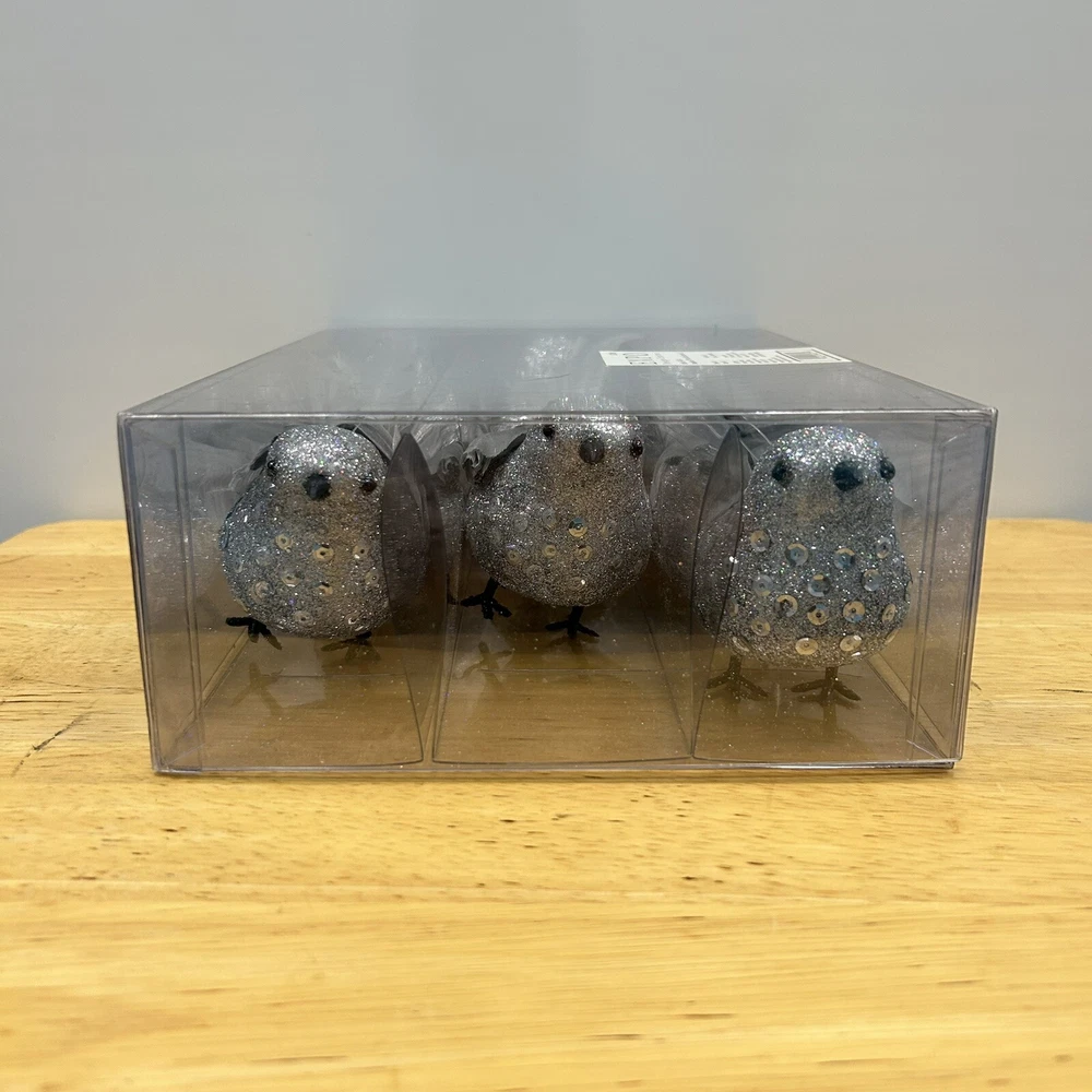Glitter Bird Ornaments Christmas Holiday Set of 6 NEW Silver Expo Design Center