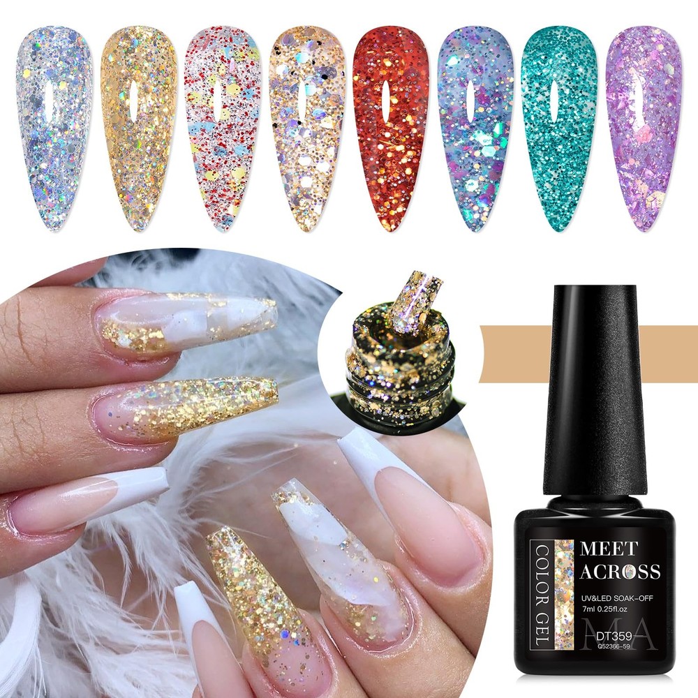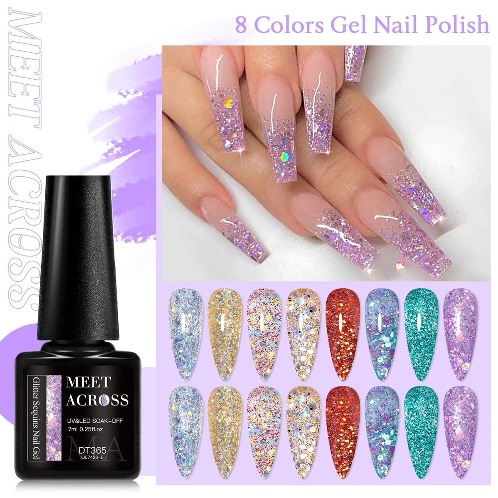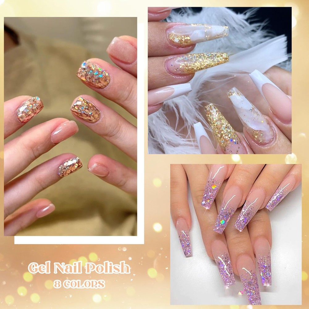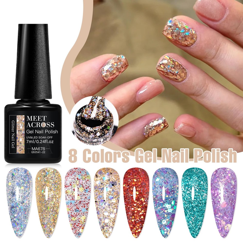Package Include: 8 Bottles 7ml reflective gel polish.In flash they are reflective and out of flash depending on the lights looks so cool, extra personality in the sun and light!Two charming effect natural light normal effect and flashing disco Effect.Not only suitable for daily life but also for parties attractive and different effects will surprise you. Easy Application And Good Tenacity: The series of reflective gel nail polish set is long lasting for 21+ days with perfect shine under proper application - With base gel top coat under the full application process.High durability and intense pigmentation makes it stay last longer and brings you brilliant shine finish. Rich Colors: whether it is sequin gel nail polish or fragment gel polish, there are a variety of colors to choose from, including various solid colors and multi-color blends, which can meet the needs of different consumers for color and achieve diversified nail design. Delicate Texture: The high-quality sequin nail gel and fragment nail gel are delicate in texture, smooth and even when applied, without lumping, sticking or obvious brush marks, and can be well attached to the nail surface, showing a delicate effect. Ideal Gift: Gel nail polish kit are appropriate for any holiday or special event,such as birthday, holiday, anniversary, Christmas, Valentine's Day, Halloween gift. Solid nail designs can be freely finished with these classic color gel.