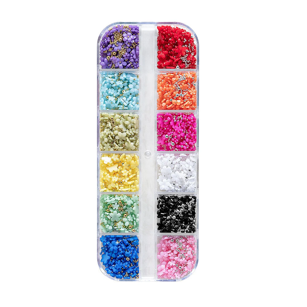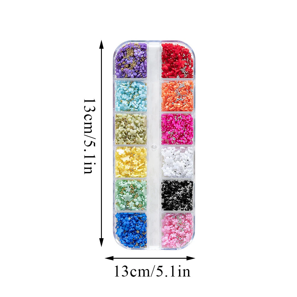 100% New And High Quality 3D Nail Art Charms Assorted Colors in Each Pack Color:Mix Color Material: Resin Package Included: 12Grids/box 3D Mixed Nail Rhinestone How to Apply: -Use A hand file or electronic file to gently file the back of the gem so there is a rough surface. -Wipe the nail off with an alcohol wipe to clean off any oils or products. -Use a small bead of acrylic and place it on the back of the charm and then gently apply pressure to the nail while holding the charm in place. -If you do not desire to use acrylic, use a thick rhinestone gel and place a small bead of it onto the back of the charm and hold in place while curing under a LED / UV lamp for a full 60 seconds. Note: Keep away from children to avoid eating!!! Please allow 1-3cm differences due to manual measurement, thanks. Please understand because of the light irradiation or computer display difference, so I can't guarantee photos and real color is 100% the same. On Sep 5, 2024 at 00:59:22 PDT, seller added the following information: