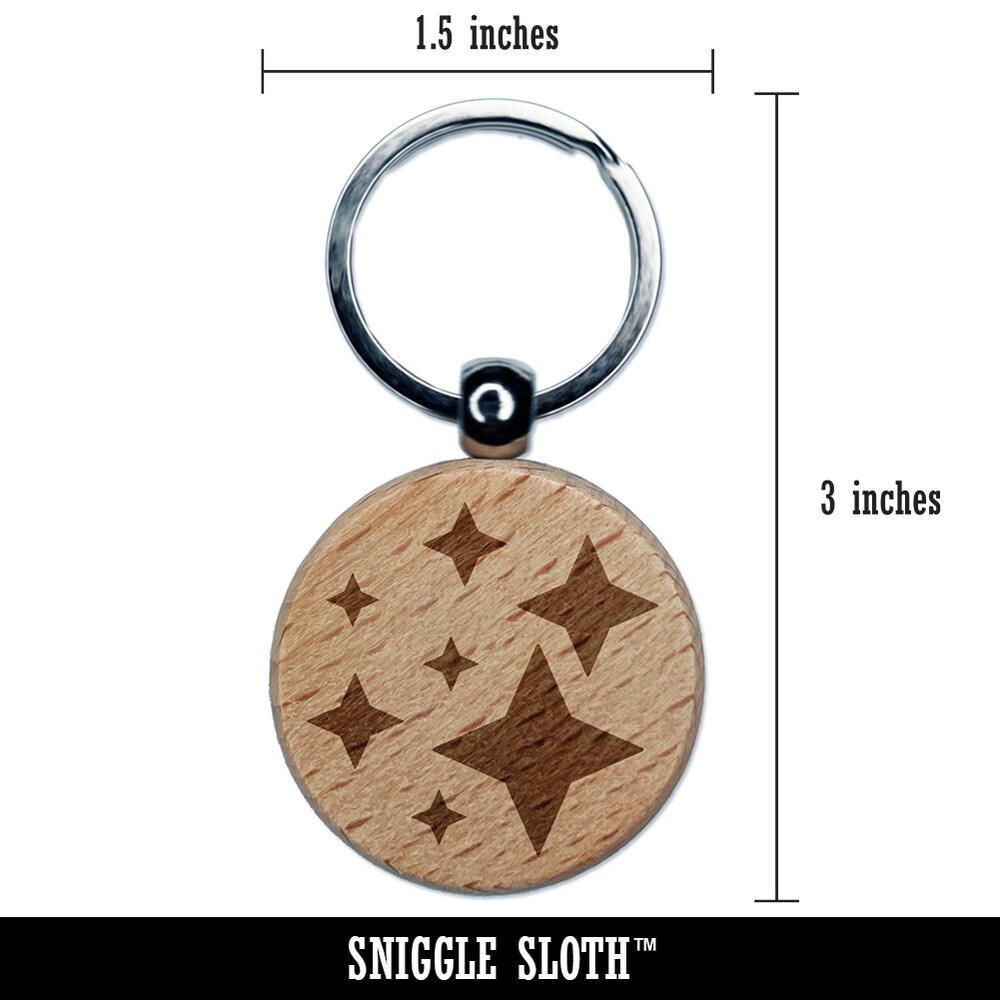 Glittering Star Engraved Wooden Keychain Charm with Shimmer