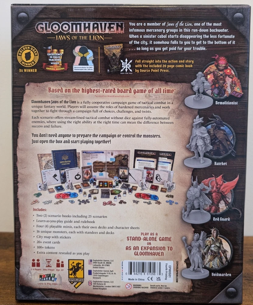 Gloomhaven: Jaws of the Lion Campaign Expansion/Game New Open Box 100% COMPLETE Shrink Wrap removed, but never used. Adult owned.