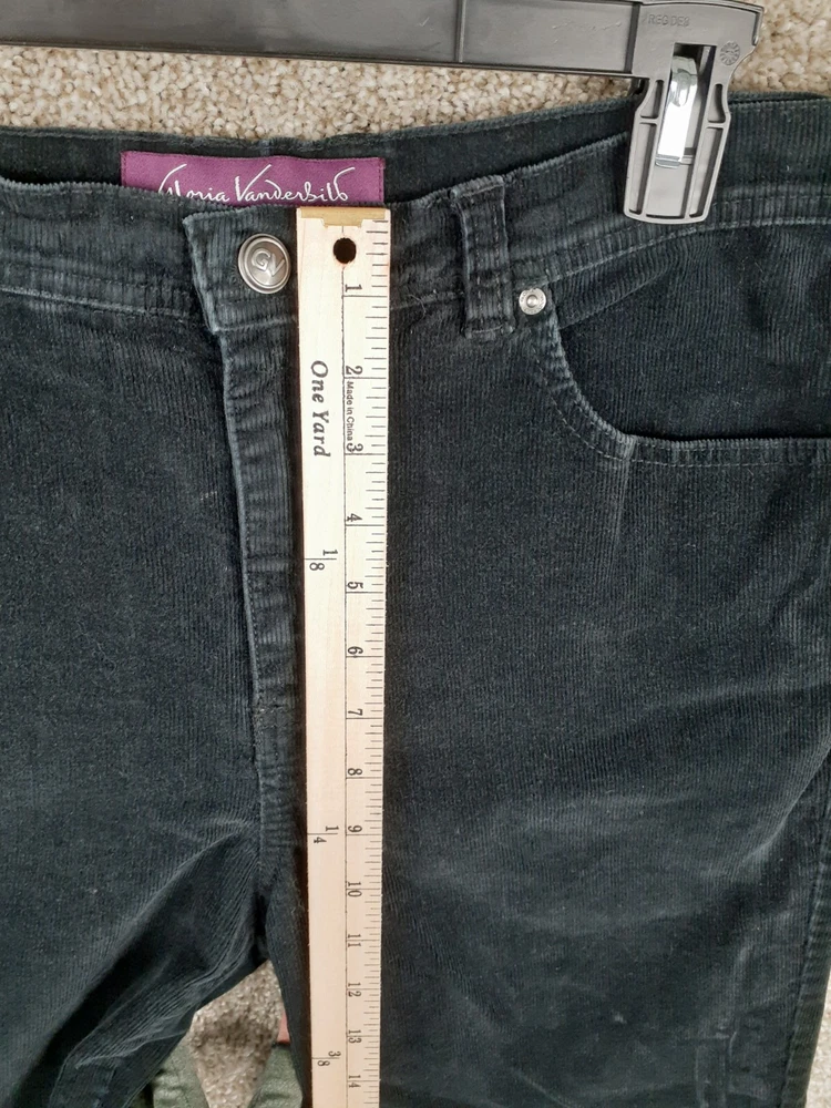 For Sale: A pair of Gloria Vanderbilt Corduroy Pant Womens 12 Black Straight Mid Rise Casual Pockets Size: Women's 12 Measurements: Refer to photos above. In good gently used condition with no major flaws such as rips, tears, or stains. We ship items daily, so plan to receive your item(s) quickly! We also combine & discount shipping for orders with multiple items. From a smoke-free home. We accept domestic 30-day returns. We provide a variety of measurements on all items. Measurements are approximate and as close to accurate as possible but certain fabrics and styles can have a slight variation. Please be sure to check all measurements on used garments as they have been laundered and might vary from other items in the same style. Please message me with any question you may have, I answer most questions very quickly!