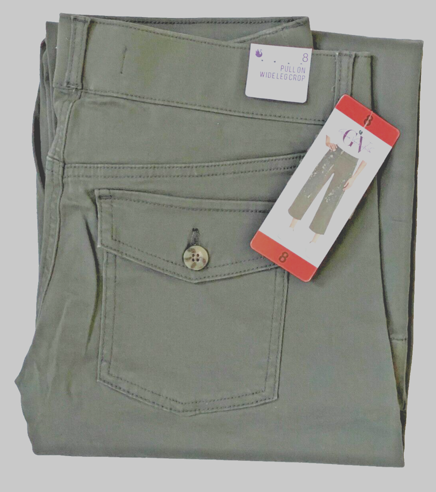 Gloria Vanderbilt Ladies' Pull-On Wide-Leg Crop pants - Size 8 Green - New! Gloria Vanderbilt Women's Pull On Wide Leg Cropped Pants in Green, Size 8. Made of a comfortable cotton blend fabric with a knit texture. The pants feature a wide-leg style and are machine washable. Brand: Gloria Vanderbilt. Model: 1797444. Content: 98% Cotton 2% Spandex Midweight Care Instructions: Machine wash in cold water with like colors Gentle cycle Do not bleach Hang to dry Cool iron if needed Manufactured by Gloria Vanderbilt The digital images we display have the most accurate color possible. However, due to differences in computer monitors, there may be variations in color between the actual product and your screen. SHIPPING We strive to process all orders within 1 Business Day or Less . Items under 16 oz will be shipped via Priority Mail or First Class . Items over 16 oz will be shipped Parcel Ground or using Calculated Shipping to ensure the most Cost-Effective means for the customer. RETURNS Return Shipping will be paid by the Buyer unless otherwise specified. Please contact us if you have any issues or concerns so we can resolve them. We appreciate your business and work to exceed your expectations! No restocking fees . THANK YOU!! Please Leave Feedback, it is Appreciated!!