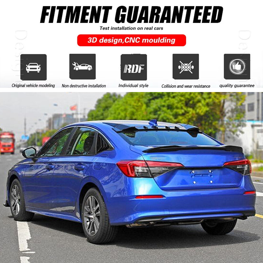 Fit for Honda Civic 11th 2022-2023 Features: Material: High Quality ABS Functions: Light and durable, create a new iconic look, enhancing the aerodynamic performance of the car Processing: CNC moulding, test installation on real car, fitment guaranteed Surface finish: Double layered UV-Protected clear coating, shining and smooth surface Packing: Multilayer protected export carton, shockproof and crashproof Installation: Tape included in the package for easy installation, perfect fitment, no modification Specification: Material: ABS Color: Gloss Black Packaging: Polyfoam box Package includes: 1x Gloss Black Spoiler Fit for Honda Civic 11th 2022-2023 Pls check the above fitment information or send us car pictures to verify before order, thanks a lot! Features: Material: High Quality ABS Functions: Light and durable, create a new iconic look, enhancing the aerodynamic performance of the car Processing: CNC moulding, test installation on real car, fitment guaranteed Surface finish: Double layered UV-Protected clear coating, shining and smooth surface Packing: Multilayer protected export carton, shockproof and crashproof Installation: Tape included in the package for easy installation, perfect fitment, no modification Specification: Material: ABS Color: Gloss Black Packaging: Polyfoam box Package includes: 1x Gloss Black Spoiler Warranty and Returns: Covered by our 30-days money-back guarantee, 1-year Warranty and friendly customer service
