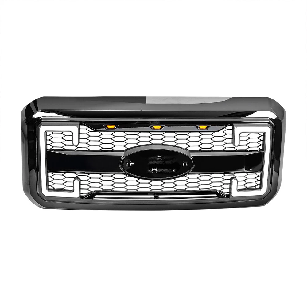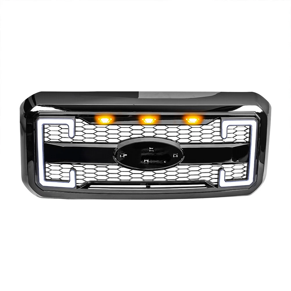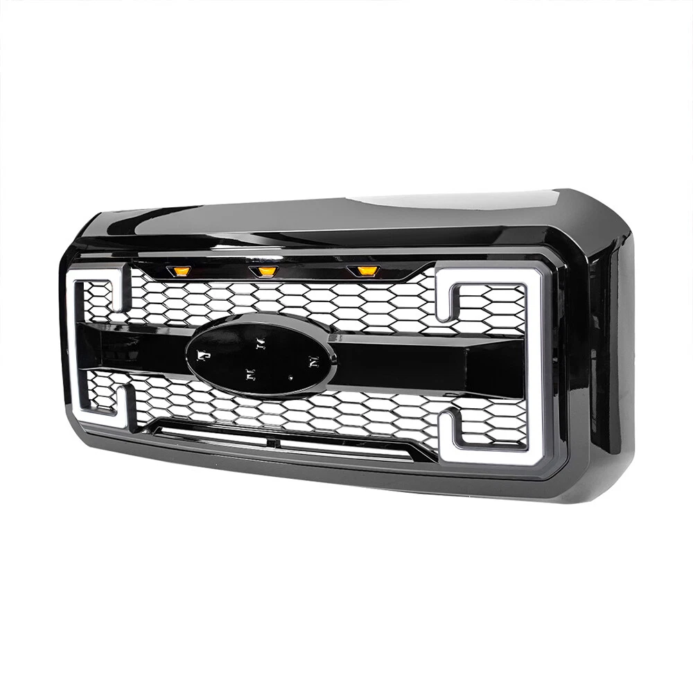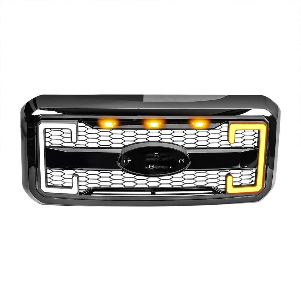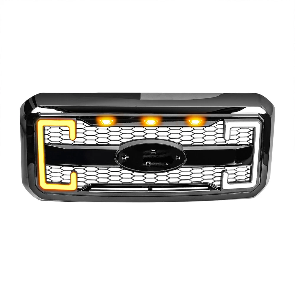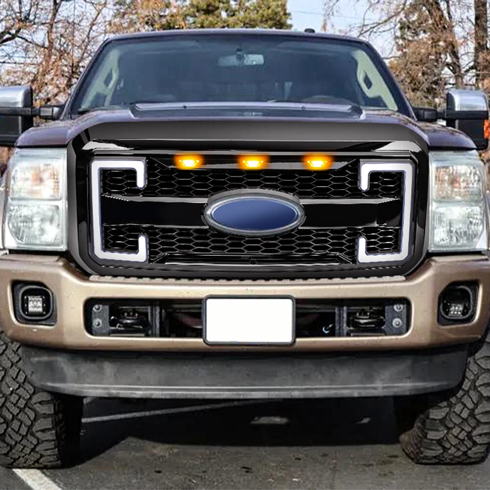 Fits Models: Compatible with 2011-2016 Ford 250, F350, F450, and F550 Super Duty. Please note: Emblem is NOT included. Unique Design: Changing lights. Off-road lights come on when you're driving straight. When you turn on the turn signal, the off-road light in the direction of the grill turns amber. Practical Design: Made of high quality ABS plastic. Installation Notes: There are two sets of lines that need to be linked. -Amber Lights Wiring: Red wire is connected to ACC, black wire is connected to the negative pole. -DRL Wiring: Red wire is connected to the ACC, black wire is connected to the negative pole, yellow wire is connected to the turn signal. Packages: 1× Glossy Black Front Grill 1x DRL Turn Signal Lights 3x Amber LED Lights Fits Models: Compatible with 2011-2016 Ford 250, F350, F450, and F550 Super Duty. Please note: Emblem is NOT included. Unique Design: Changing lights. Off-road lights come on when you're driving straight. When you turn on the turn signal, the off-road light in the direction of the grill turns amber. Practical Design: Made of high quality ABS plastic. Installation Notes: There are two sets of lines that need to be linked. -Amber Lights Wiring: Red wire is connected to ACC, black wire is connected to the negative pole. -DRL Wiring: Red wire is connected to the ACC, black wire is connected to the negative pole, yellow wire is connected to the turn signal. Packages: 1× Glossy Black Front Grill 1x DRL Turn Signal Lights 3x Amber LED Lights