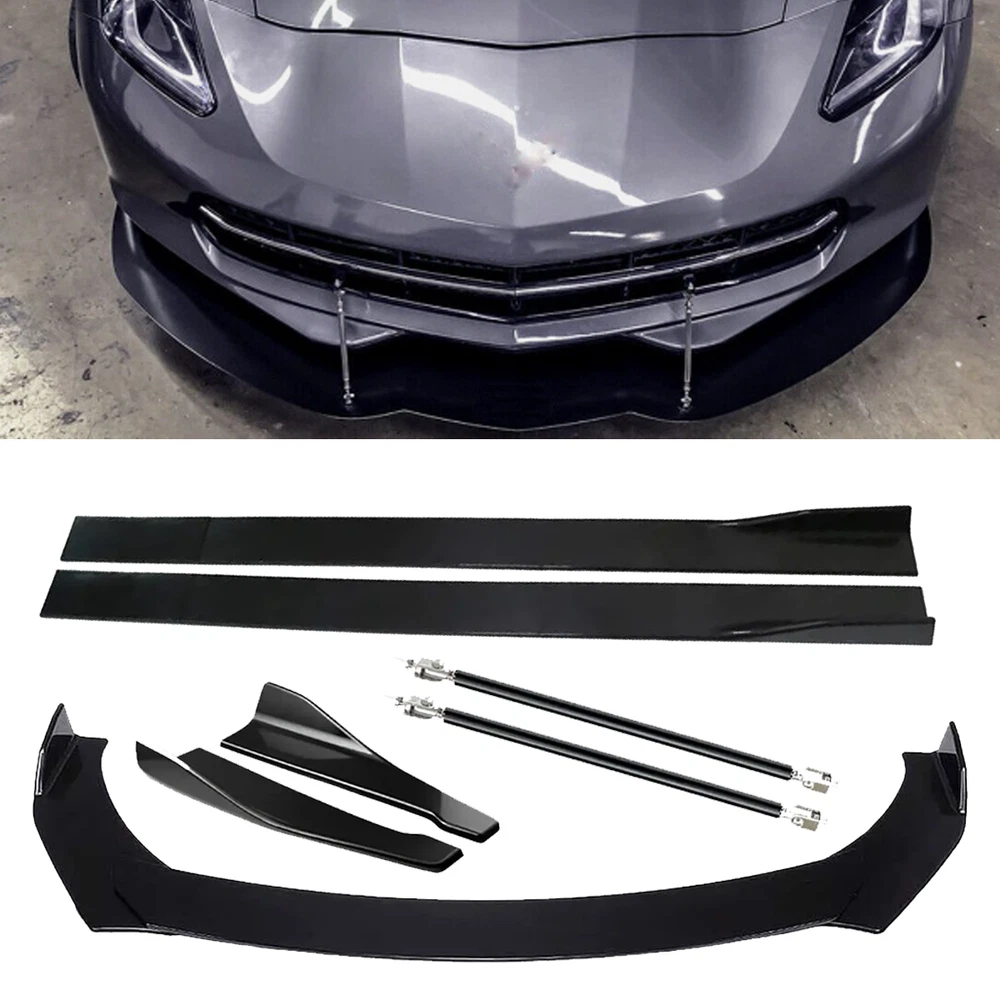 Glossy Front Splitter Bumper Lip Spoiler Strut Side Skirt For Chevrolet Corvette