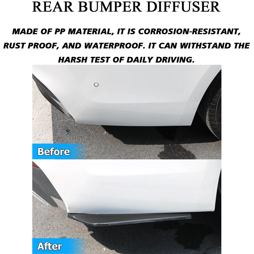Specifications: Condition:100% Brand New Material:Polyurethane (ABS) Placement on Vehicle:Front, Left, Lower, Rear Color:Glossy Black Features: - Bold and aggressive,eye-catching design. - UV-resistant protect against fading. - Designed to fit each vehicle make and model. - Easy to install,no modification needed. - Gives your truck or SUV improved protection against scratching. Note: 1.Please allow 1-3mm deviation due to manual measurement. 2.Please understand that the pictures might be slightly different from the real product because every monitor is not calibrated same. Package Included: 2pcs Rear Bumper Lip(Accessories included)