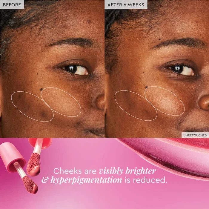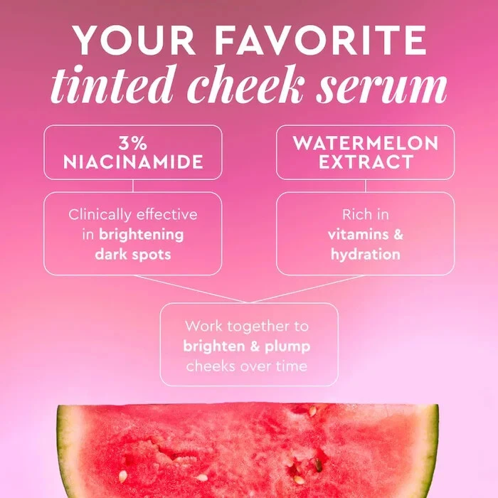 What it is: A tinted cheek serum that visibly plumps, brightens dark spots, and hydrates while providing a buildable, natural flush of color that melts into skin. Skin Type: Normal, Dry, Combination, and Oily Skincare Concerns: Dryness, Dullness and Dark Spots Highlighted Ingredients: - 3% Niacinamide: Visibly brightens dark spots, improves texture, and minimizes redness. - Jojoba Oil Coated Pigments: Non-comedogenic pigments create a naturally hydrated dewy flush of color. - Watermelon Extract & Centella Asiatica: Deeply hydrates & plumps while calming redness. Ingredient Callouts: This product is vegan, cruelty-free, and comes in recyclable packaging. What Else You Need to Know: This dewy, tinted cheek serum is powered by 100% skincare with clinically effective ingredients to brighten dark spots, improve texture, minimize pores, and hydrate. Available in two sheer, buildable shades, Dewy Flush melts into skin while delivering a soft flush of color that’s never overpowering.