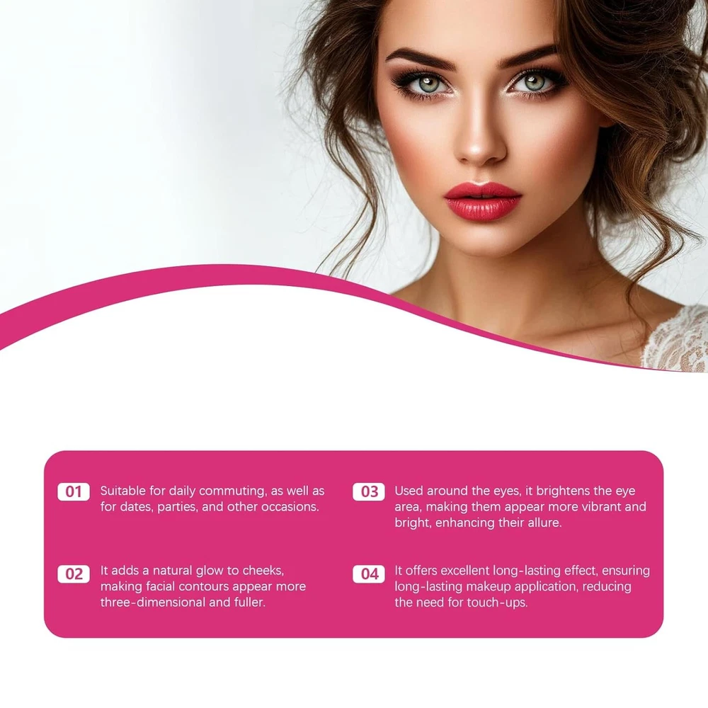 Free eBay listing template designed by dewiso.com Eye & Cheek Palette- Eyeshadow and Highlighter Makeup, Eyeshadow & Highlighter Duo with Radiant Color Palette, Seamless Blendability for All-Day, Day-to-Night Wear FREE AND FAST SHIPPING! About this item 【All-in-One Design, Simplified Routine】This versatile makeup palettes combines highlighter, blush, and eyeshadow in one. Featuring both matte and shimmery finishes, it effortlessly creates focal-point makeup for the entire face, meeting diverse needs from natural daytime looks to elegant evening styles 【Silky-Smooth Texture & Rich Pigmentation】 Experience the luxury of our makeup palette. Its skin-friendly, velvety formula blends effortlessly and delivers buildable, highly-pigmented color for a seamless finish, from subtle to stunning 【Long-Lasting & Skin-Hugging Wear】 Designed for all-day wear. The finely-milled powder resists fading, caking, or patchiness, keeping your highlighted glow fresh and radiant through hours of wear 【Universal Shades for Versatile Looks】 Create your perfect glow with this versatile highlighter makeup. The thoughtfully curated shades flatter all skin tones and can be layered for everything from a soft daytime highlight to an intense evening radiance 【Compact & Travel-Ready, The Perfect Gift】 Meet your essential. This sleek, all-in-one compact is perfect for travel and on-the-go touch-ups. Beautifully packaged, it makes a flawless and fashionable gift Show more Product We offer a 30-Day Return Policy on items which you are not completely satisfied with. You have the option for a full-refund or an exchange of the item. No returns are available on items shipped outside of the US . Shipping We offer Free Shipping to the US and ship within 2 business days of payment, usually sooner. We use UPS express shipping. That's why your products are usually delivered within 3 days . Contact We try our very best to make sure every customer is completely satisfied. If there's a problem , message us! We're happy to help. 24/7 live chat available.
