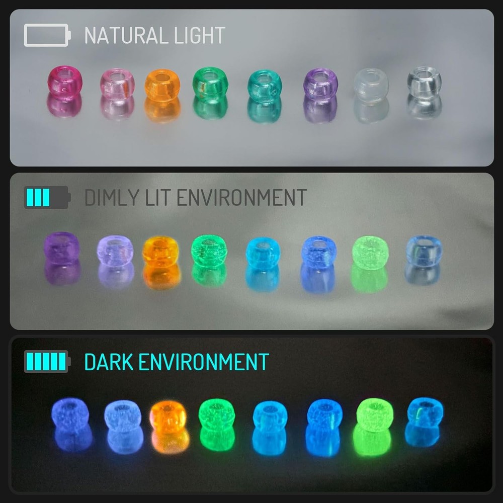 Glow in The Dark Pony Beads Bulk, 1000+pcs 6x9mm Hair the dark Product Details Product Dimensions: 0.35 x 0.24 x 0.16 inches Item Weight: 10.5 ounces Manufacturer: Sunlode Country of Origin: China Item model number: SL-PONY-GLOW-1000 Color: Glow in the dark Material: Acrylic Brand: Sunlode Shape: Round Recommended Uses For Product: Hair Decoration, Crafting UV-Activated Glow Magic - Neon Brilliance in Darkness: 1,000 PCS vibrant 6x9mm beads in 9 neon shades glow intensely after UV/natural light charging. Perfect for raves, parties, or camping gear—transform bracelets/hair accessories into radiant light strips when lights dim, sparking wonder and nostalgic joy for children and adults Child-Safe Material - Non-Toxic & Smooth-Edged: Crafted with food-grade acrylic resin, certified by CPSC/EN71 standards. fostering independent creativity while ensuring parental peace of mind Multi-Purpose Design - From Hair to Wrist Artistry: 6mm big holes fit elastic bands, paracord, or braiding hair. Craft bohemian braids, friendship bracelets, or keychains in minutes. Perfect for TT-style Kandi bracelet Rainbow Creativity Unleashed - 9 Colors Combinations: Features neon pink, orange, yellow, green, blue, purple a total of 9 colors mixes. Organized in color-coded compartments for effortless morandi palettes, holographic gradients, or monochromatic stacks Scene linkage - Festive Atmosphere: Easy to make Glow ID bracelets that can instantly connect with people, paired with Halloween or Christmas decorations to create glowing costumes. UV science can also be explored through practical techniques. Also used as party gifts, summer camp projects, or collaborative art events