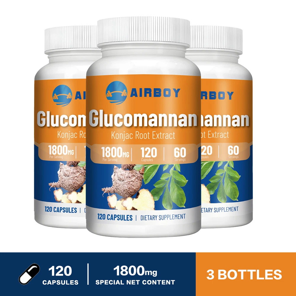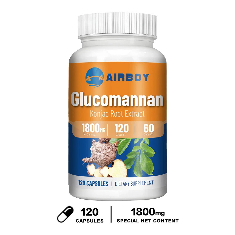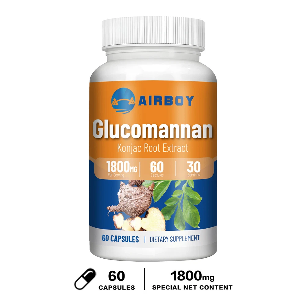 Effects: Weight Loss, Weight Management Ingredients: Glucomannan Directions: Take 2 capsules once daily after a meal. Shipping: Ships within 48 hours on working days. Shelf life: 2 years Description: Airboy offers high quality glucomannan capsules containing 1800 mg of glucomannan each. Glucomannan is a soluble puffed fiber extracted from konjac root that absorbs water and expands in the stomach, creating a feeling of fullness and reducing hunger. Glucomannan can help you lose weight, suppress appetite, reduce fat absorption and calorie intake, making it easier for you to achieve your ideal weight goals. 100% Natural Ingredients: Our products are made with 100% natural ingredients. gluten-free, vegan, non-GMO and sugar-free. Document