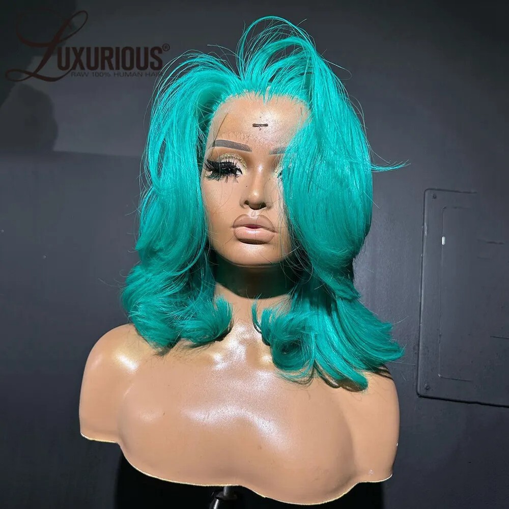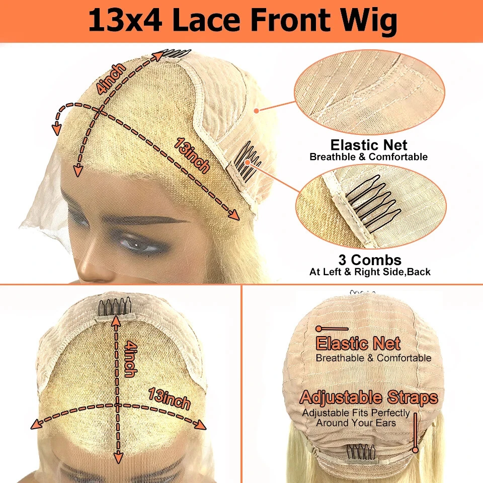 250% Density Body Wave Layered Wig Green Pink Brazilian Human Hair Glueless Honey Blonde 13x4 HD Lace Front Wig Ready To Wear Pre Plucked Natural Hairline.Can Restyle By Yourself 613 lace frontal wig colored human hair wig Cap Size: Medium(22.5inch) Lace Color:Transparent Lace The cap has 4 combs (front , side and back) and straps inside!