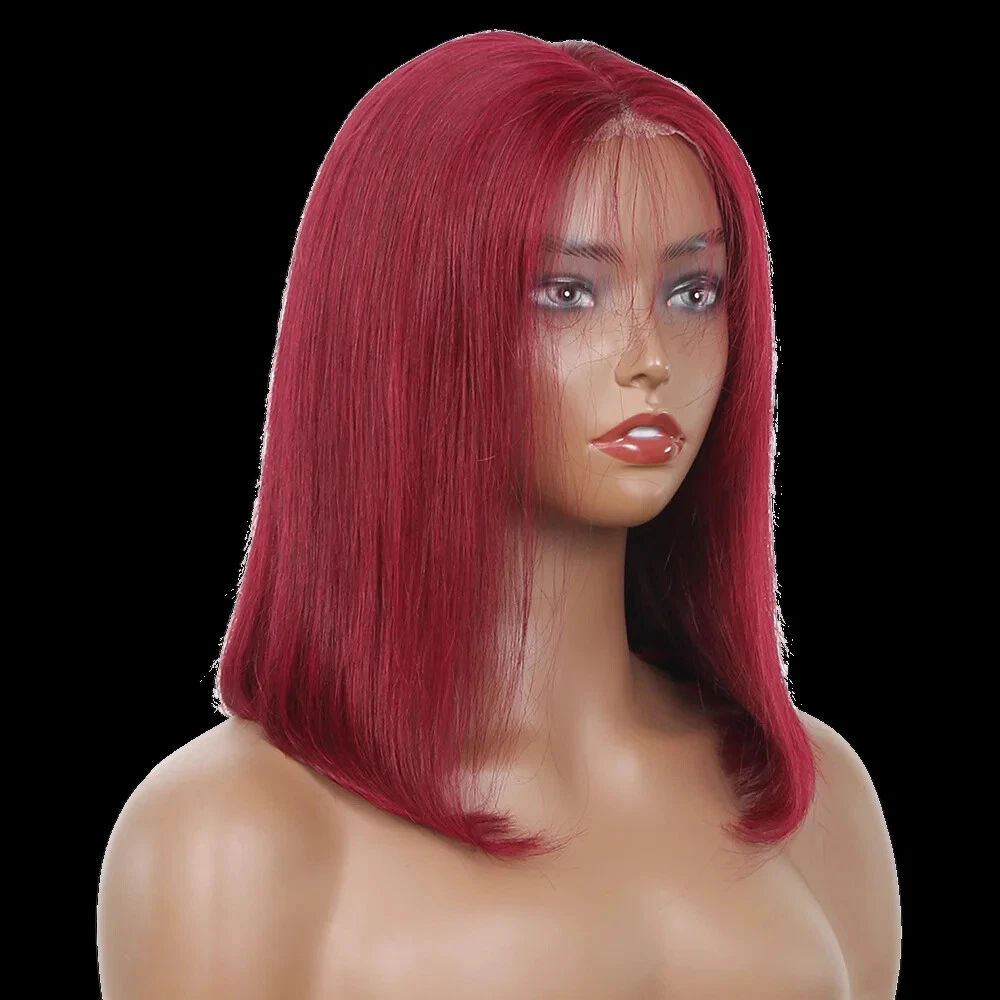 Specifications: Material: 100% Human Hair Weight: 135g-175g length: 8-16 Inch Texture: Straight hair Hair Tape: Brazilian hair,Burmese hair,Indian hair,Peruvian hair Hair Style: 6x4 Glueless Human hair Bob lace wig Hair color: 99J Lace Color:Transparent lace Features: l No Chemical,No Shedding,No Tangle,No Smell . Shiny,Smooth,Silky Hair l Double Weft , Factory D irect S ales l Cap: Average cap size22.5inch,4combs in the cap to fix easily. l Lace Part: 6x4 Glueless Lace Wig Pack Content: 1 * wig+1*wig cap
