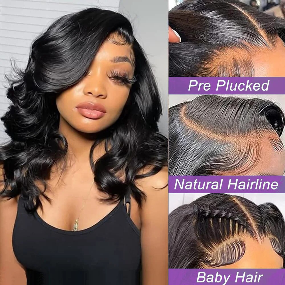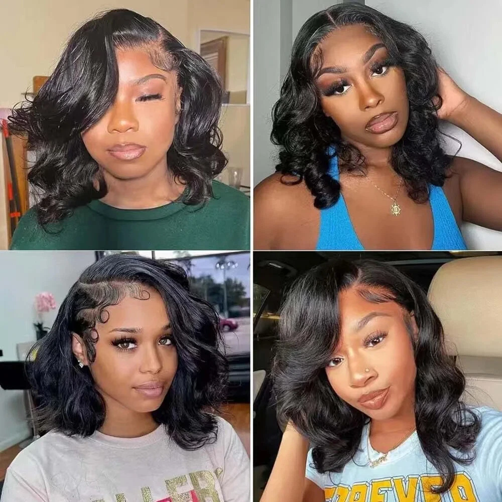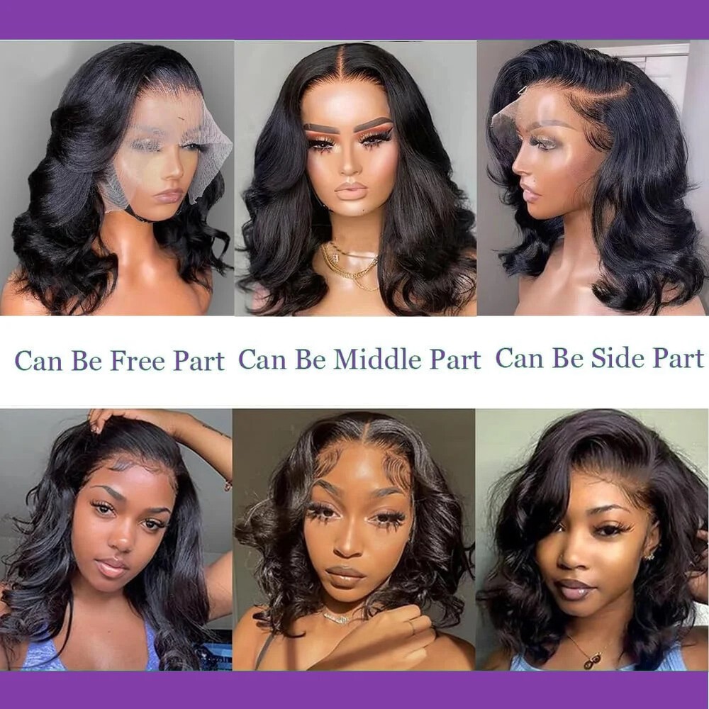 Hair Brand: Myrna Glueless Wig Store Wig Type: 4x4 Lace Bob Wig, 13x4 Lace Frontal Bob Wig, 5x5 Glueless Bob Wig. Lace Type: Hd Transparent Lace Preplucked Natural Hairline Wig Texture: Body Wave Brazilian Human Hair Wig Hair Density: 180%, 230% Density Lenght:10-16 inch.