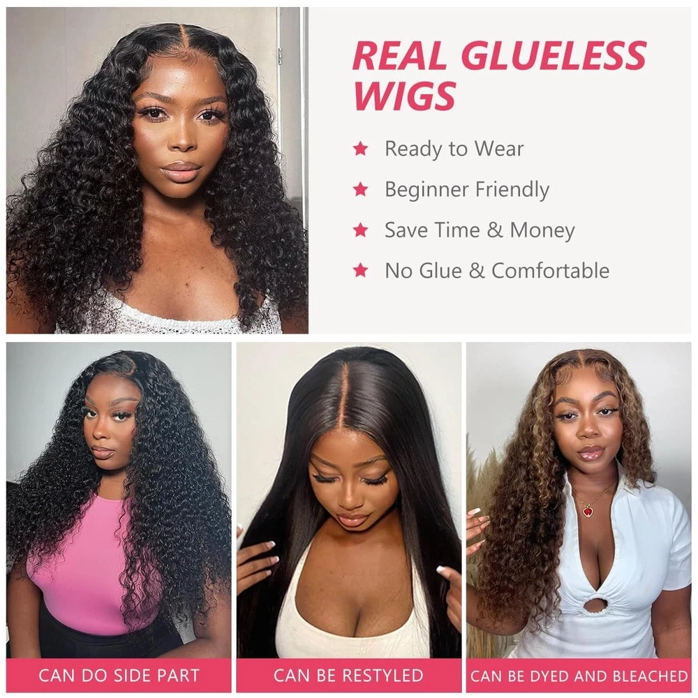 【Black Ready-To-Wear Glueless Wigs Material】Glueless Wig Human Hair,Donated By Brazilian Teenage Girls. Very Soft And Smooth, Won'T Fall Off. Extra Large Lace Area Can Be Designed According To Your Preference For Different Looks. Natural Black Color Is Suitable For All Women 【Glueless CurlyWear And Go Glueless Wig Detail】Breathable Transparent 4x4 Hd Lace Material That Perfectly Blends With Your Skin, With A Pre Plucked Pre Cut Design That Keeps The Edges Clean And Sturdy. 【Glueless Wigs Human Hair Pre Plucked Pre Cut Advantages】 3 Seconds Install Glueless Wigs!No Skill Required, Just Wear&Go! Save Your Time, Beginner Friendly. Glueless Straight Lace Human Hair Wig Pre Cut Pre Plucked Natural Hairline. No Glue, No Gel, Protect You Skin 【Eool C-Shape Ear Design 3d Dome Cap Cap】The Black Glueless CurlyHair Wig Features A 21.5-22.5 Inch Medium-Sized 3d Breathable Cap, Meticulously Measured To Snugly Fit Your Head With Its Specially Designed Arch. Hat With Non-Slip Elastic Band And Does Includes 4 Small Combs, Making It Suitable For All Head Sizes While Ensuring Breathability And Comfort. Additionally, The Removable And Adjustable Elastic Band Allows The Scalp To Breathe Freely And Securely Holds The Wig In Place 【4x4 Curly Lace Front Wig Human Hair Suitable For Any Occasion】Glueless Wig Human Hair Suitable For Parties, Birthdays, Travel, Celebrations, Back To School And Daily Life. It Also Can Give It To Family And Friends In Christmas, New Year And Birthday. Make You More Confident And Attractive